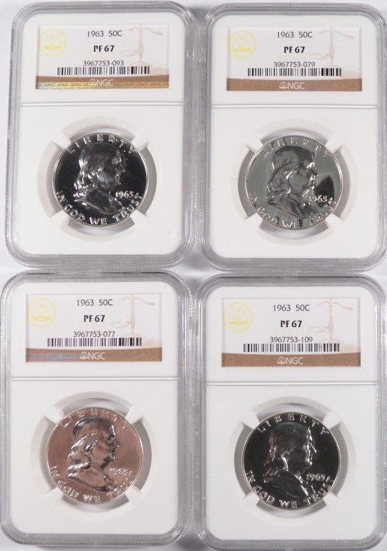 ( 4 ) 1963 FRANKLIN HALF DOLLARS, NGC PROOF-67