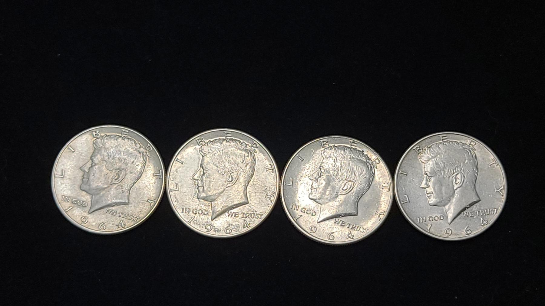 (4) 1964 90% Silver Kennedy Half Dollars - Face Value: $2.00