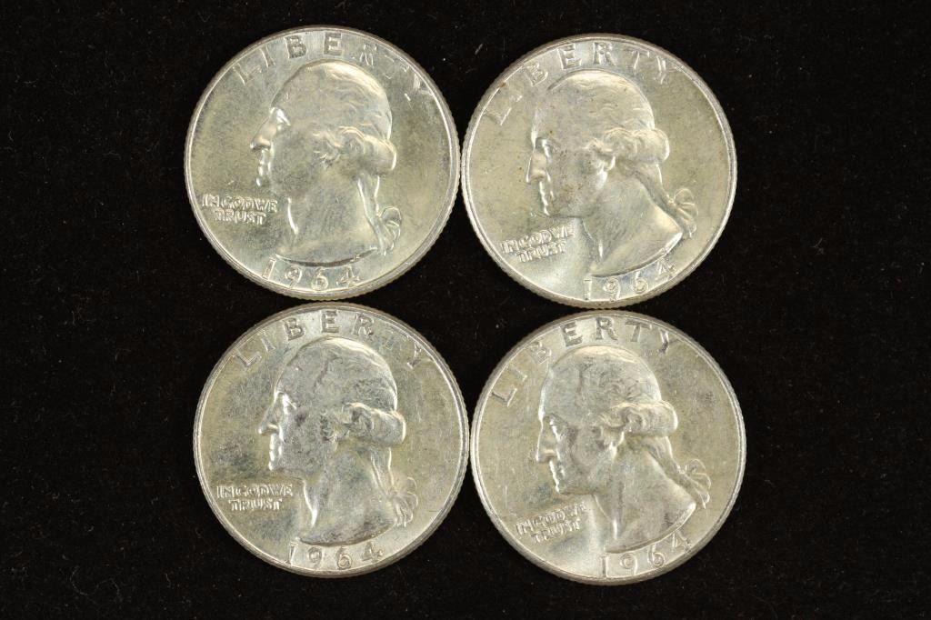 4-1964 WASHINGTON SILVER QUARTERS UNC