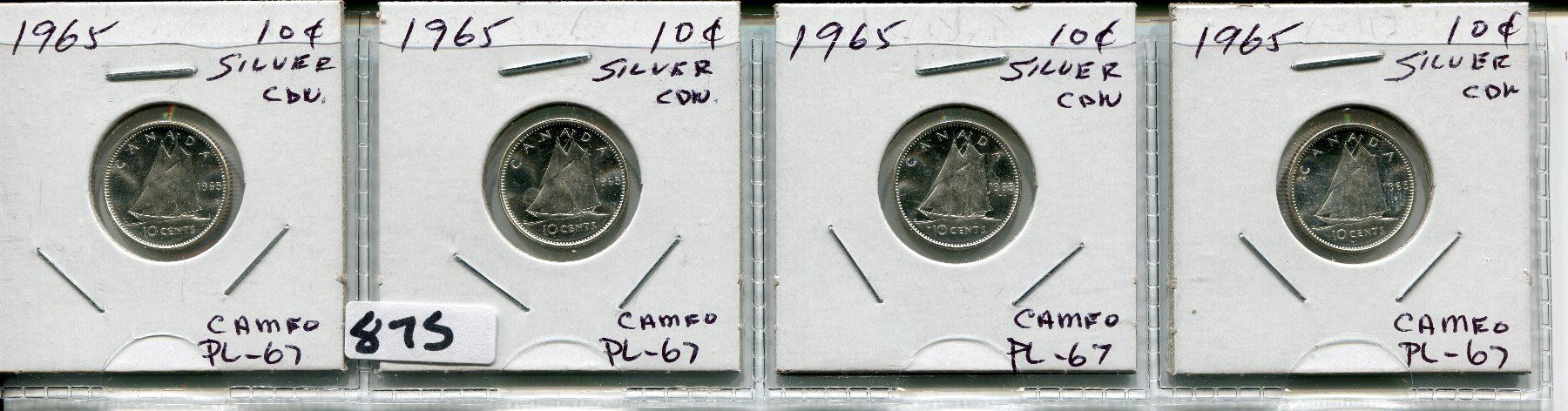 4 - 1965 CNDN SILVER DIMES, UNCIRCULATED, CAMEO