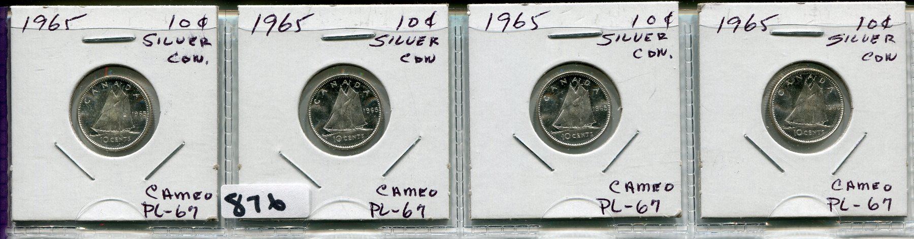 4 - 1965 CNDN SILVER DIMES, UNCIRCULATED, CAMEO
