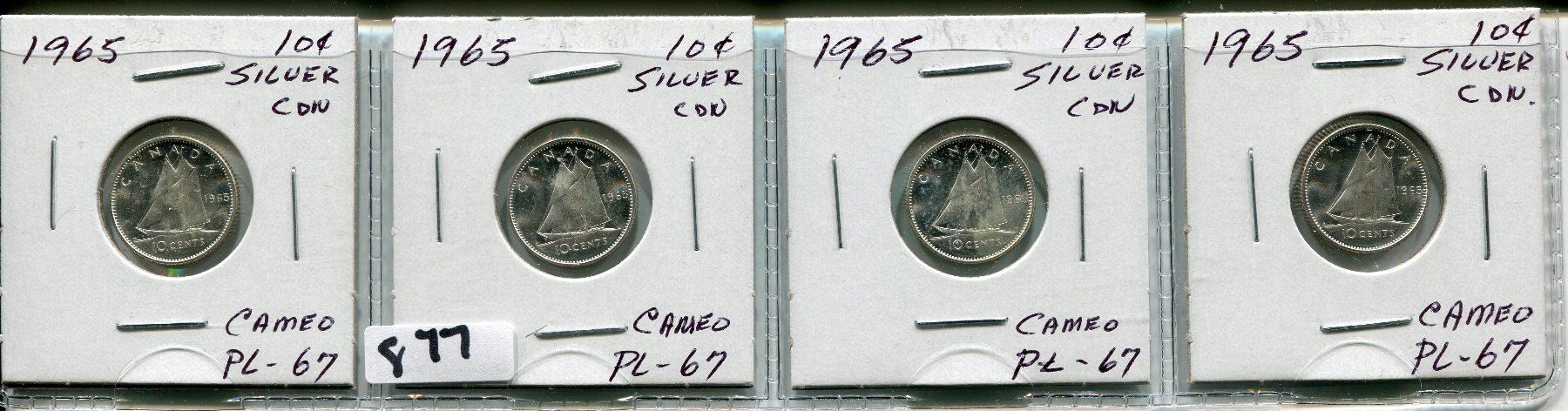 4 - 1965 CNDN SILVER DIMES, UNCIRCULATED, CAMEO