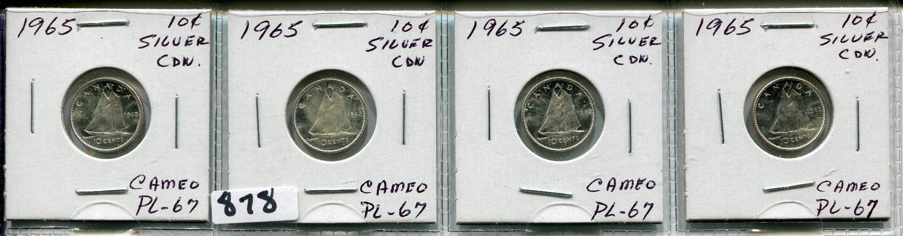 4 - 1965 CNDN SILVER DIMES, UNCIRCULATED, CAMEO