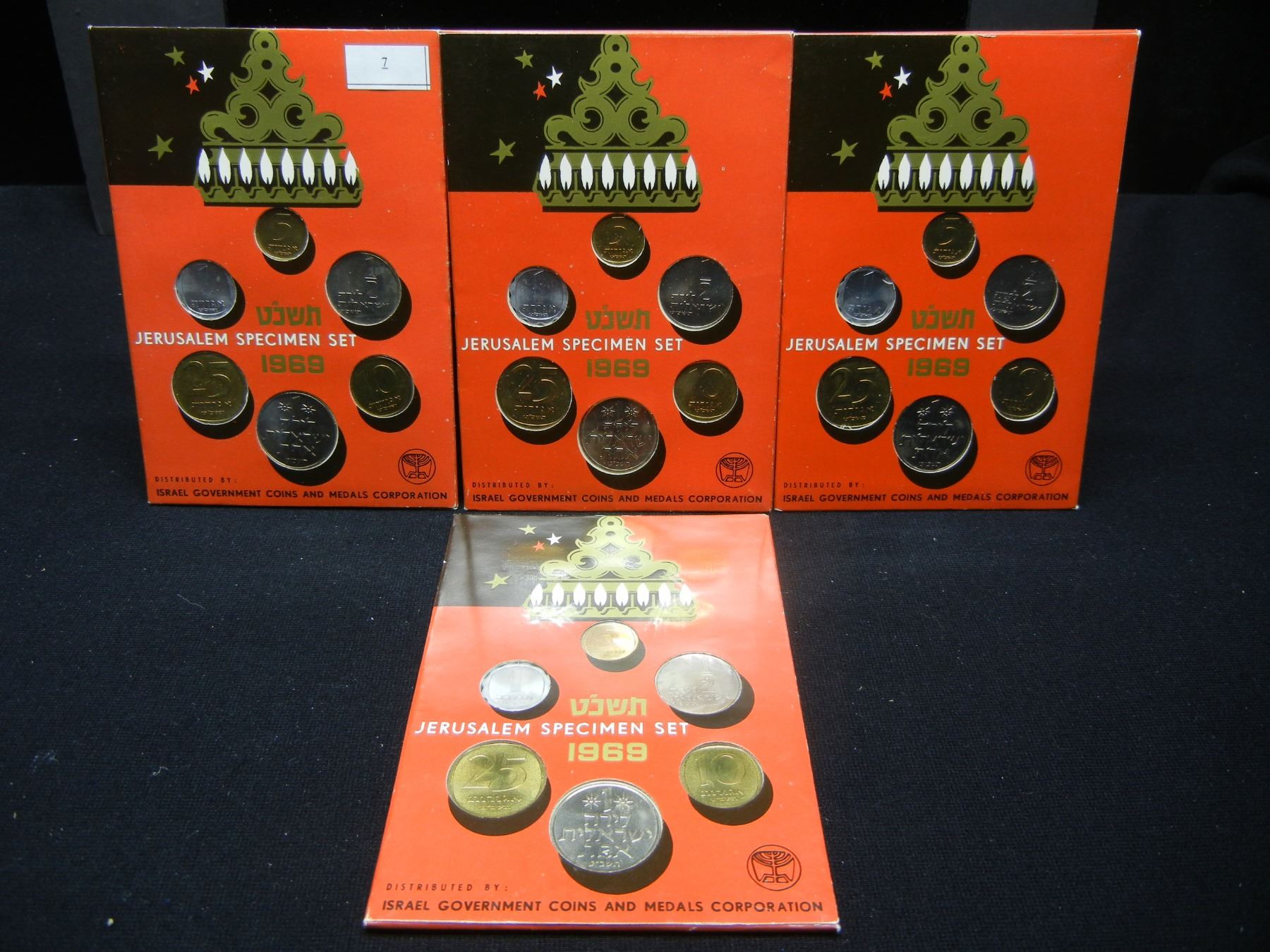 (4) 1969 Israel Specimen Sets by Israel Gov't Printer Nice