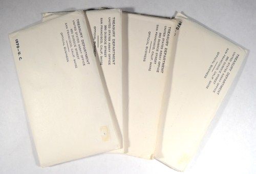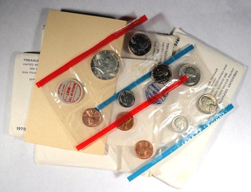 GET FOR OF THESE BETTER DATE MINT SETS IN THIS LOT, ALL HAVE NICE COINS, ESTIMATE $70.00 TO $75.00