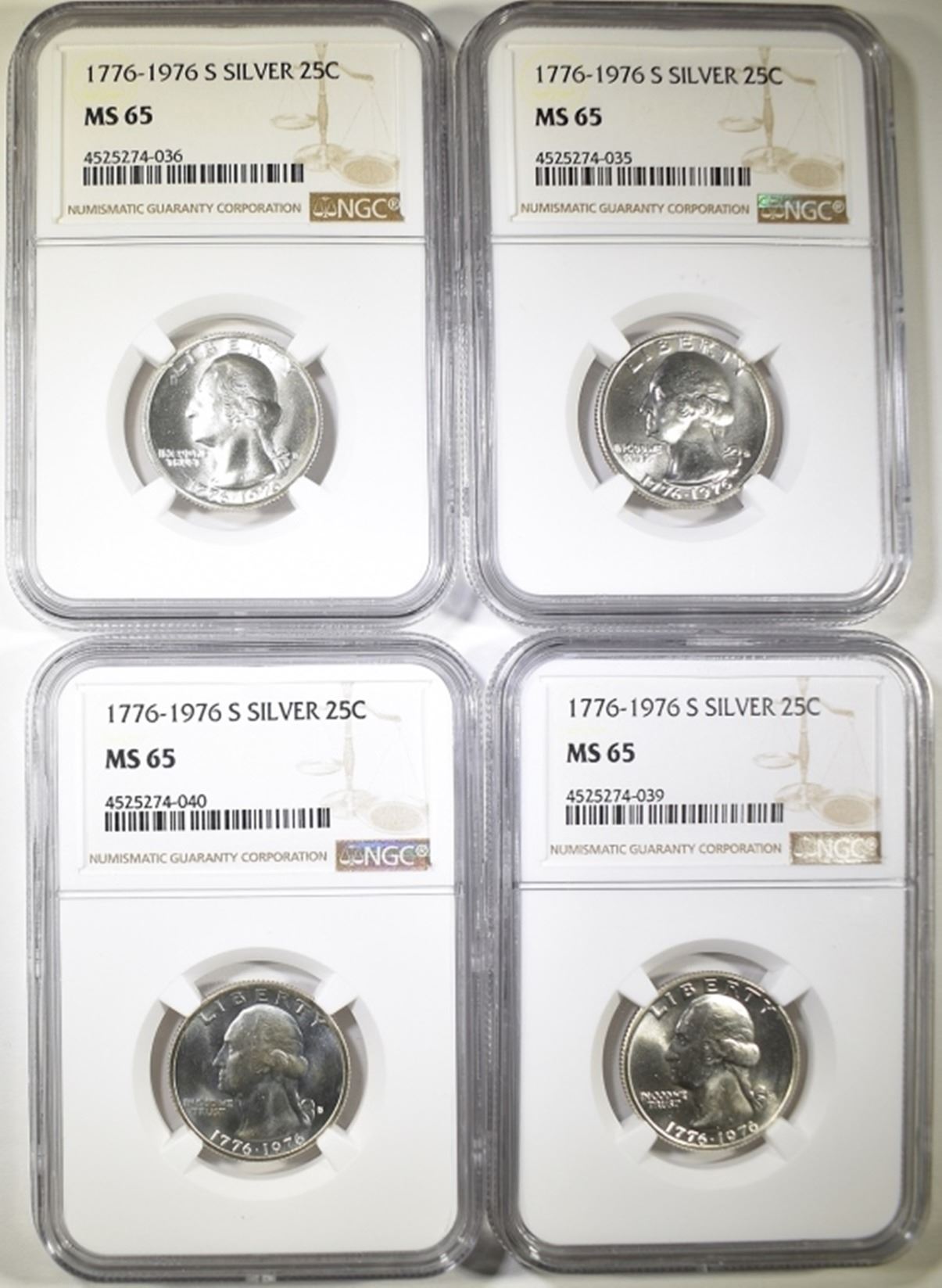 4-1976-S SILVER WASHINGTION QUARTERS, NGC MS-65