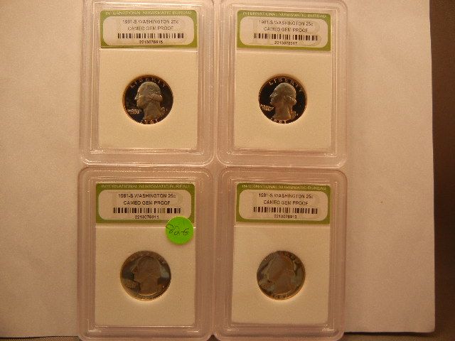 (4) 1981-S Washington Quarters, Graded by INB Cameo Gem Proof