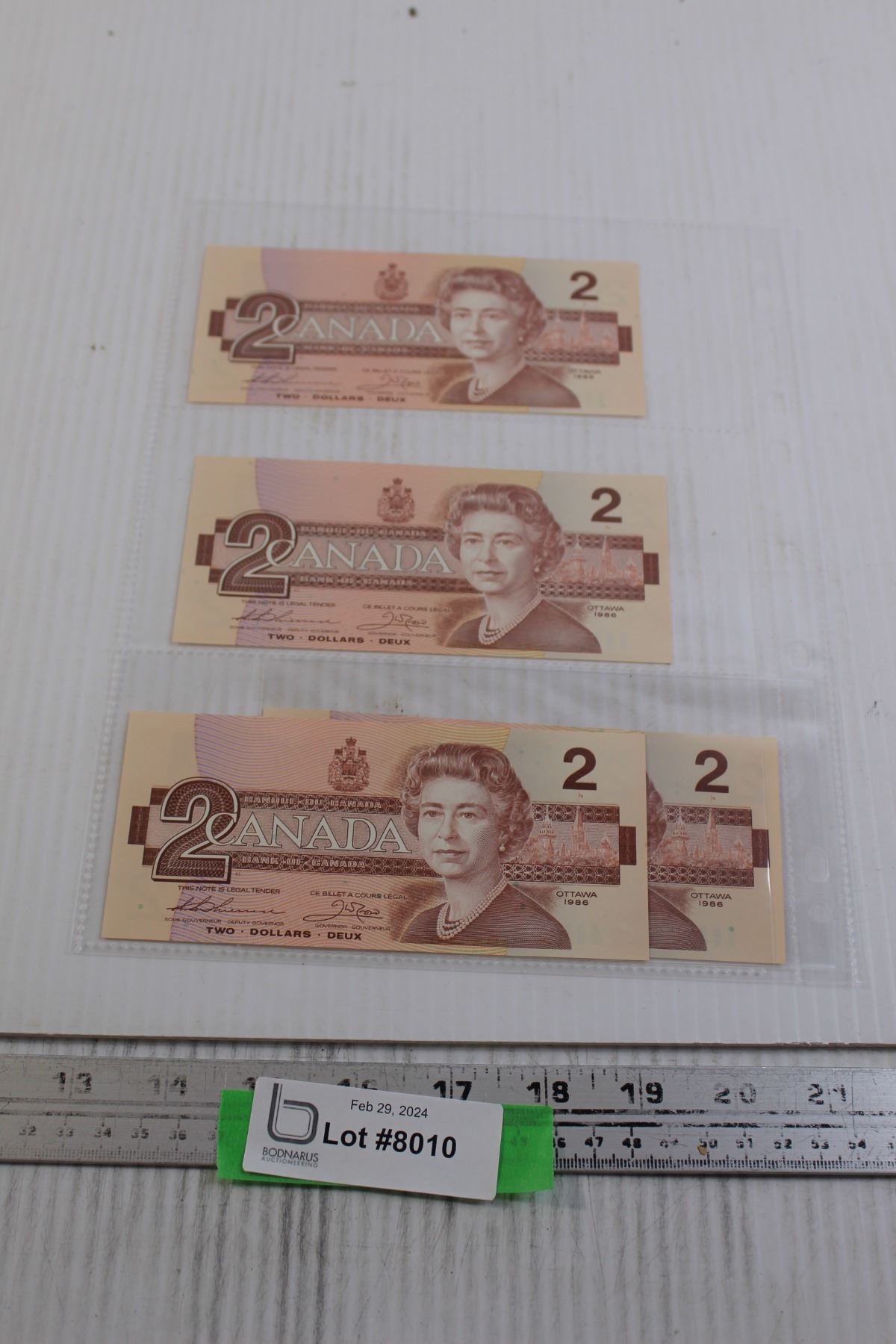 (4) 1986 Uncirculated Sequential Canadian $2 Bills