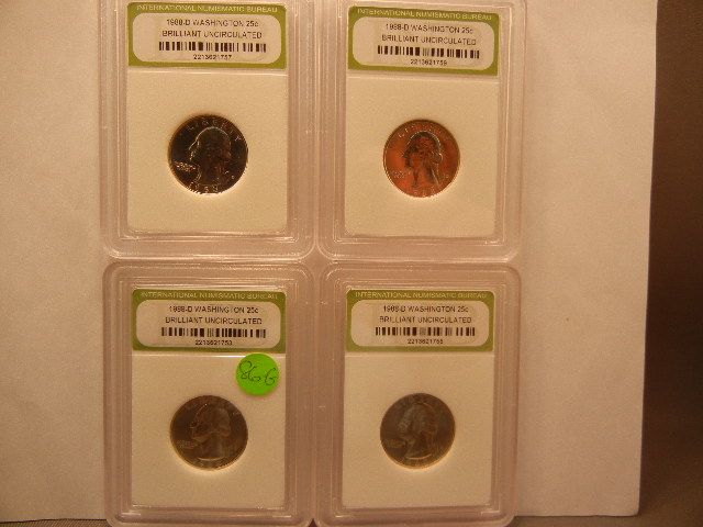 (4) 1988-D Washington Quarters, Graded by INB BU