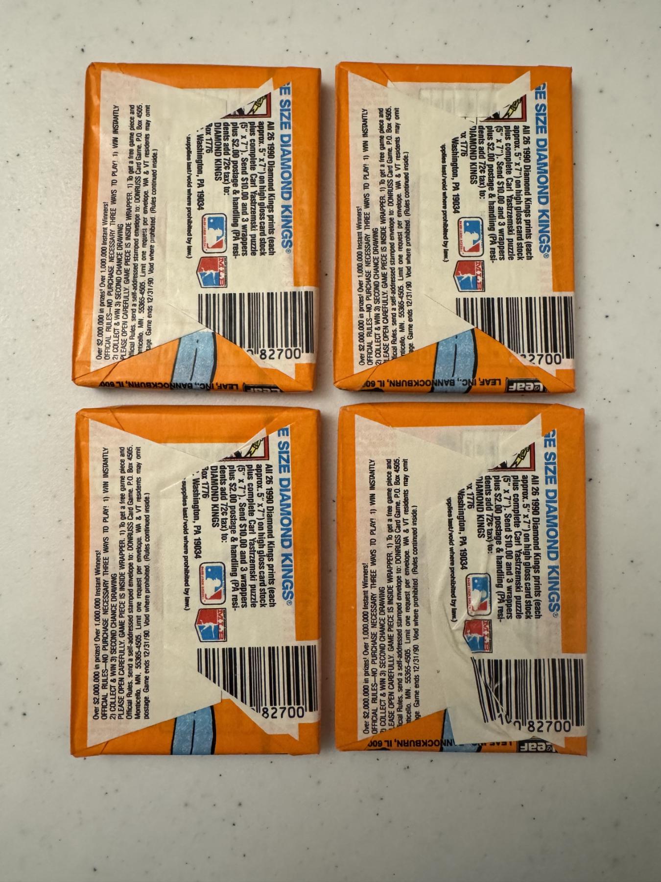 4 - 1990 Donruss Unopened Baseball Wax Packs - Mint Condition - 16 Cards Per Pack