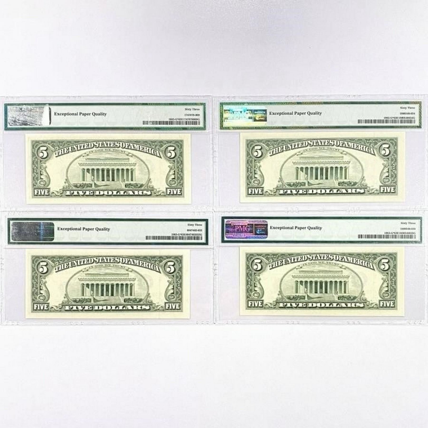 (4) 1993 Star $5 Fed Reserve Notes PMG Ch UNC 63