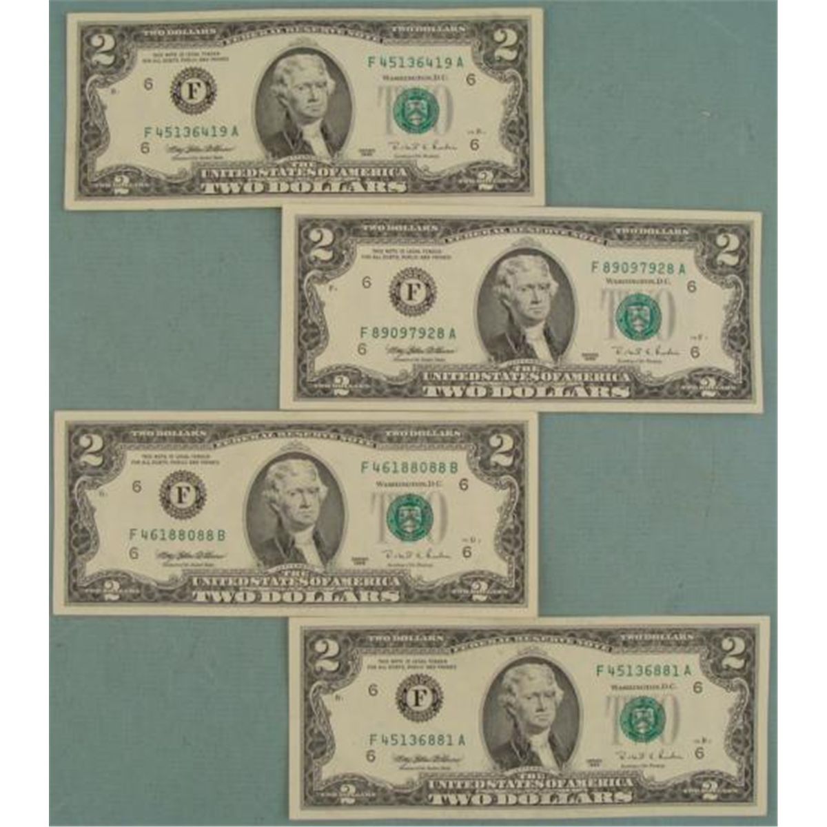 (4) 1995 $2 bills * * Grade: Uncirculated * Mint mark: F (Atlanta)