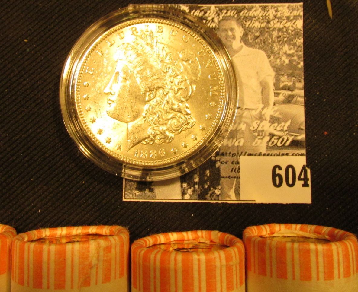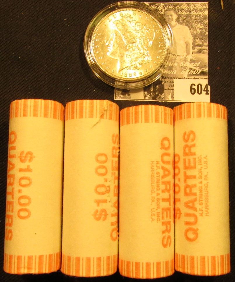 (4) 1999 D Original BU Bank-wrapped Rolls of Delaware Statehood Quarters; & 1886 P BU Morgan Silver Dollar, encapsulated. ($41.00 total face value).