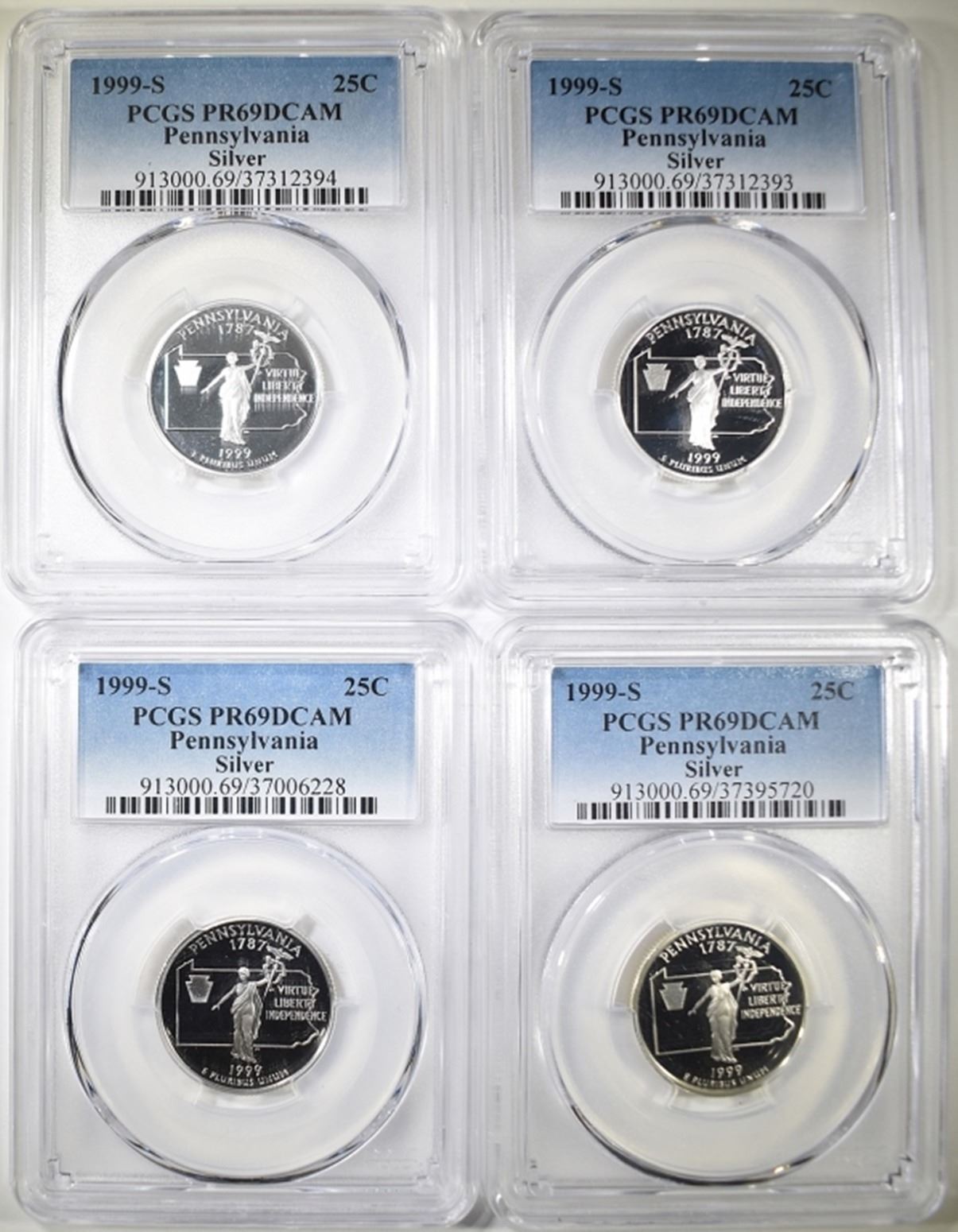 Grading: Every person has their own opinion. It is the responsibility of the buyer to examine and grade to their own satisfaction before they bid. ABSOLUTELY NO COIN RETURNS ON THE BASIS OF GRADE. Buyers shall rely entirely on their own inspection and information. Our estimates are values taken from the latest "Coin World" trends based on t he grade listed of a coin. This value/estimate is not an inducement to bid this amount. Bid the amount you wish. If you have questions or concerns about any coin, call us before you bid.