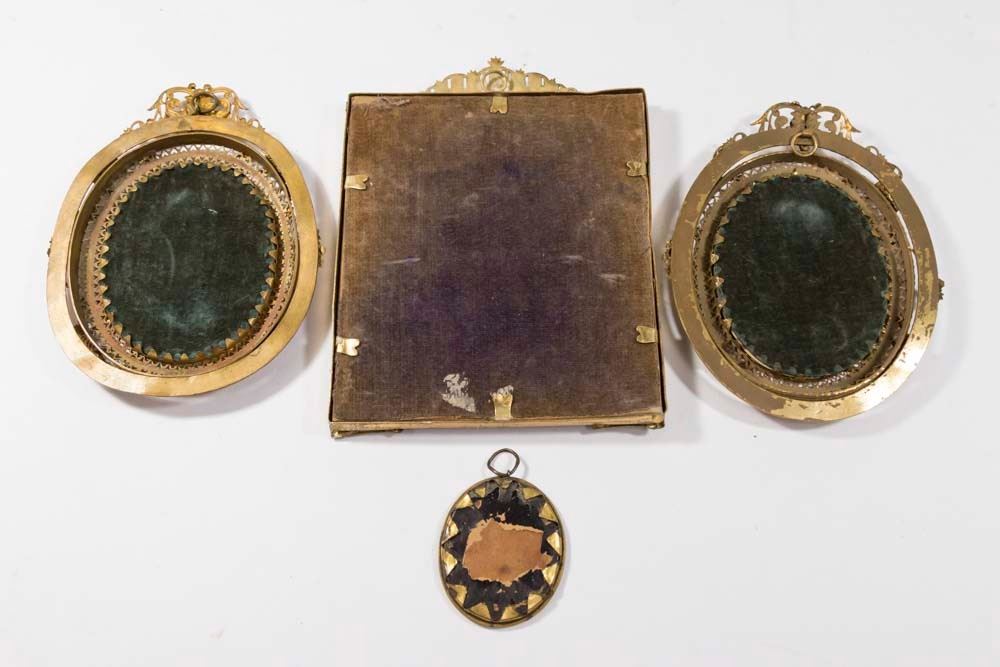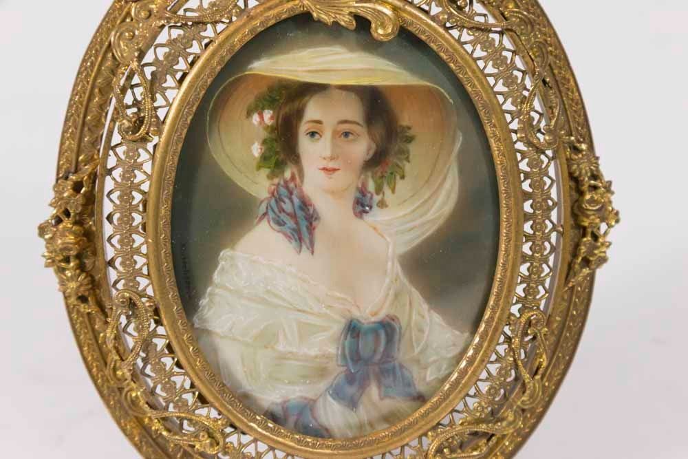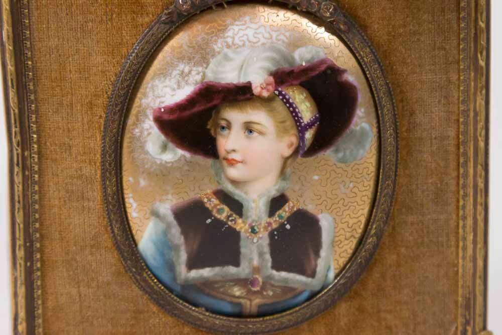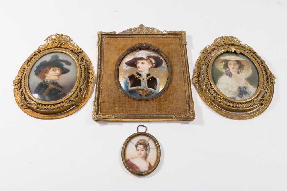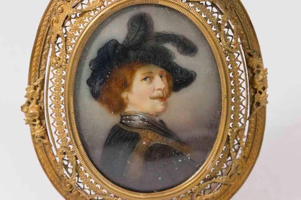 One on porcelain. Gentleman signed Rembrandt. Largest approx. 6 1/2" H. From an Edgewater, NJ estate. Smallest with cracked glass.