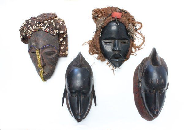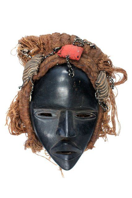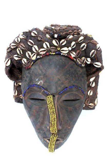 1 is approx. 12" x 9" original beading and handwoven headdress with shells. 1 is approx. 9" X 8" with handbraided yarn hair, black ebony. Matched pair 'Man and Woman,' approx. 14" X 6".