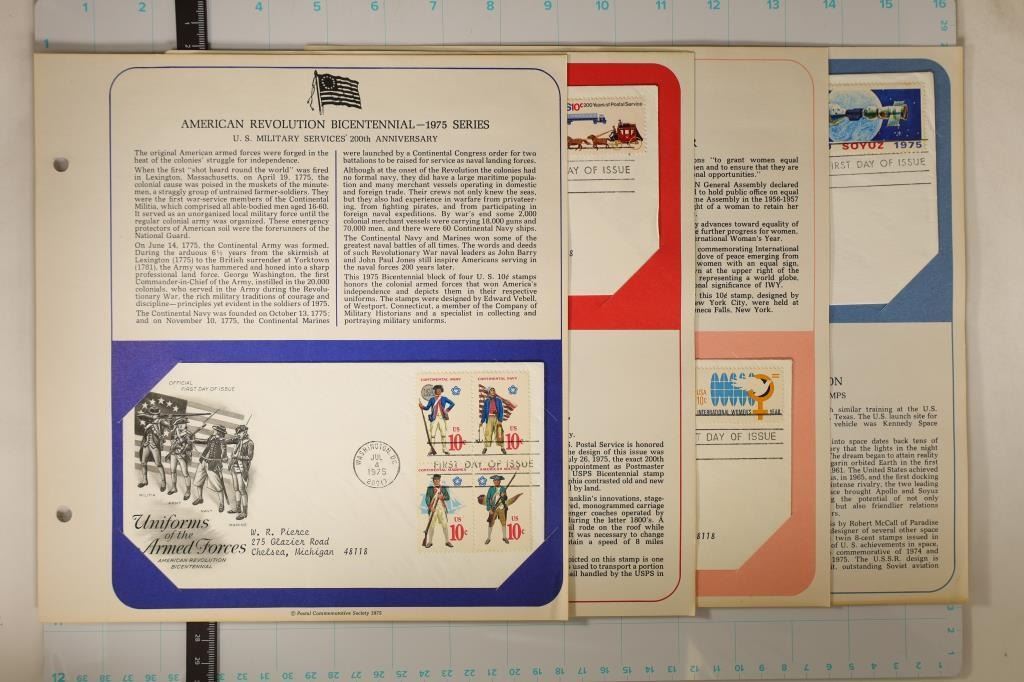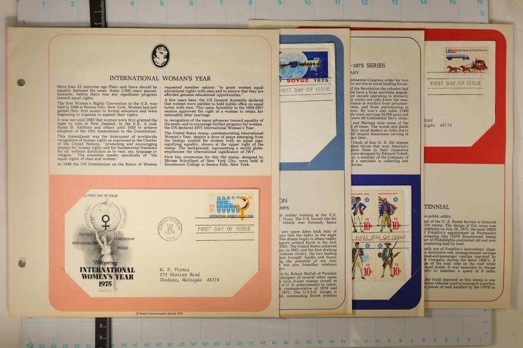 INTERNATIONAL WOMANS YEAR, 1975 JOINT US-SOVIET COOPERATION IN MANNED SPACE FLIGHT, 1975 UNIFORMS OF THE ARMED FORCES AND 1975 US POSTAL SERIVCE BICENTENNIAL