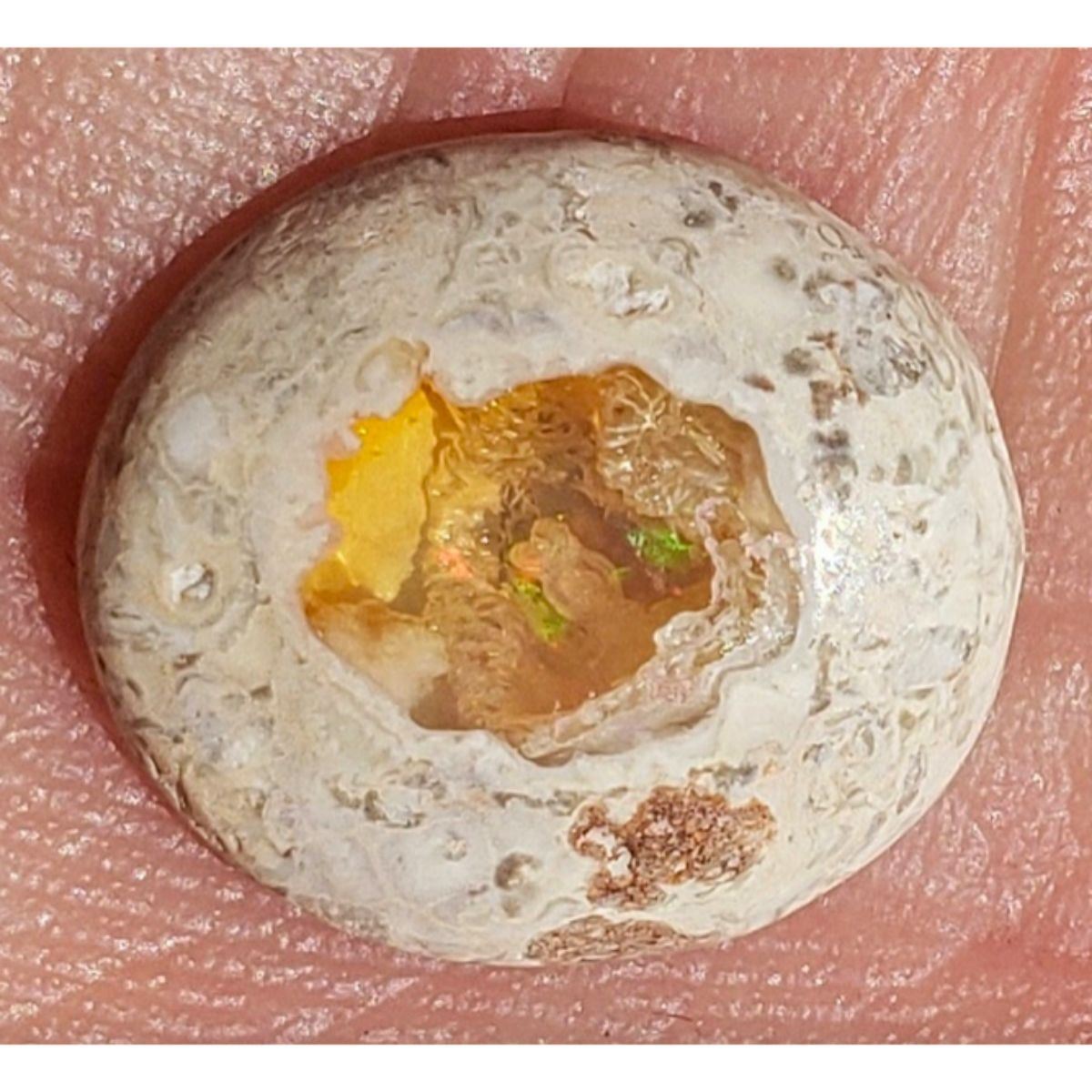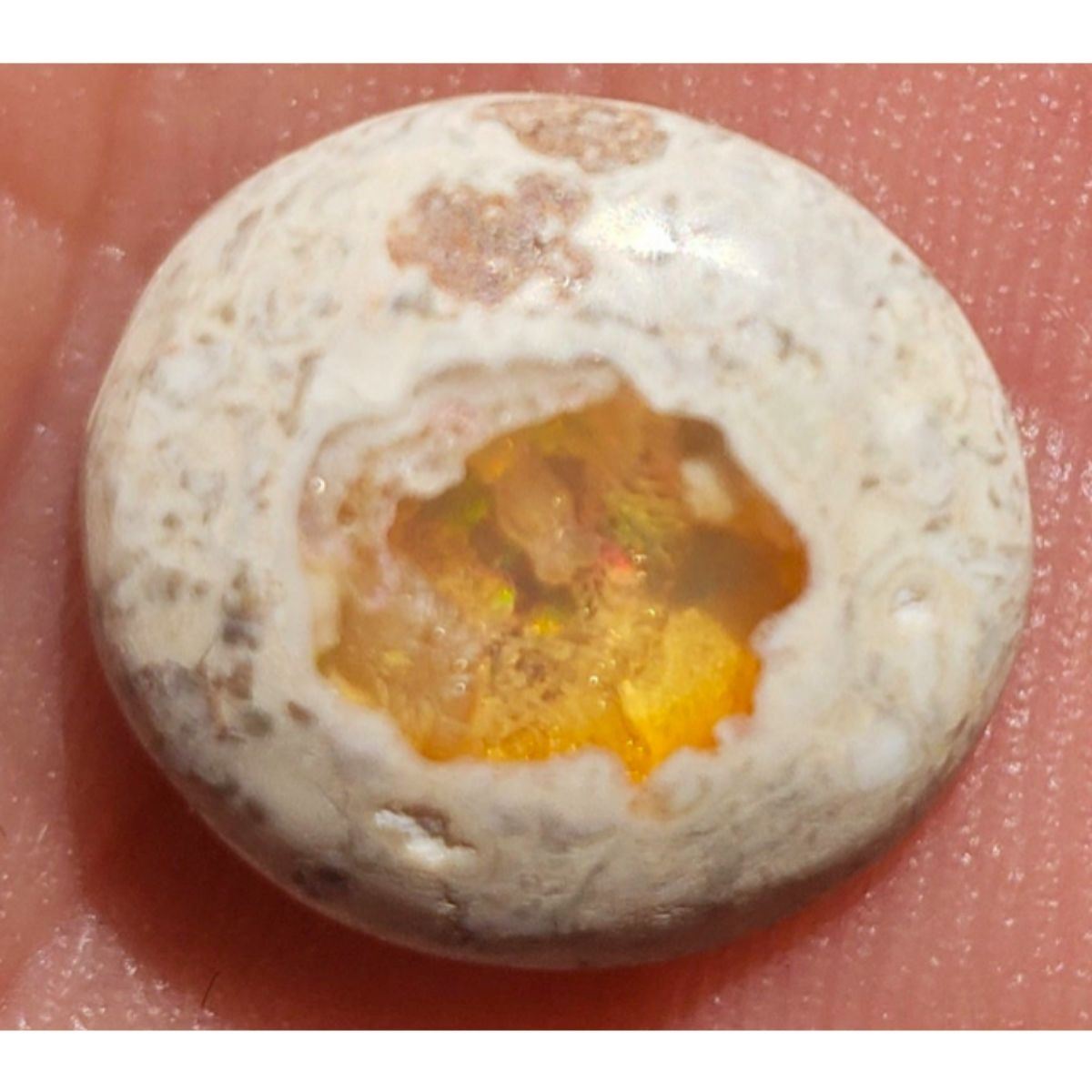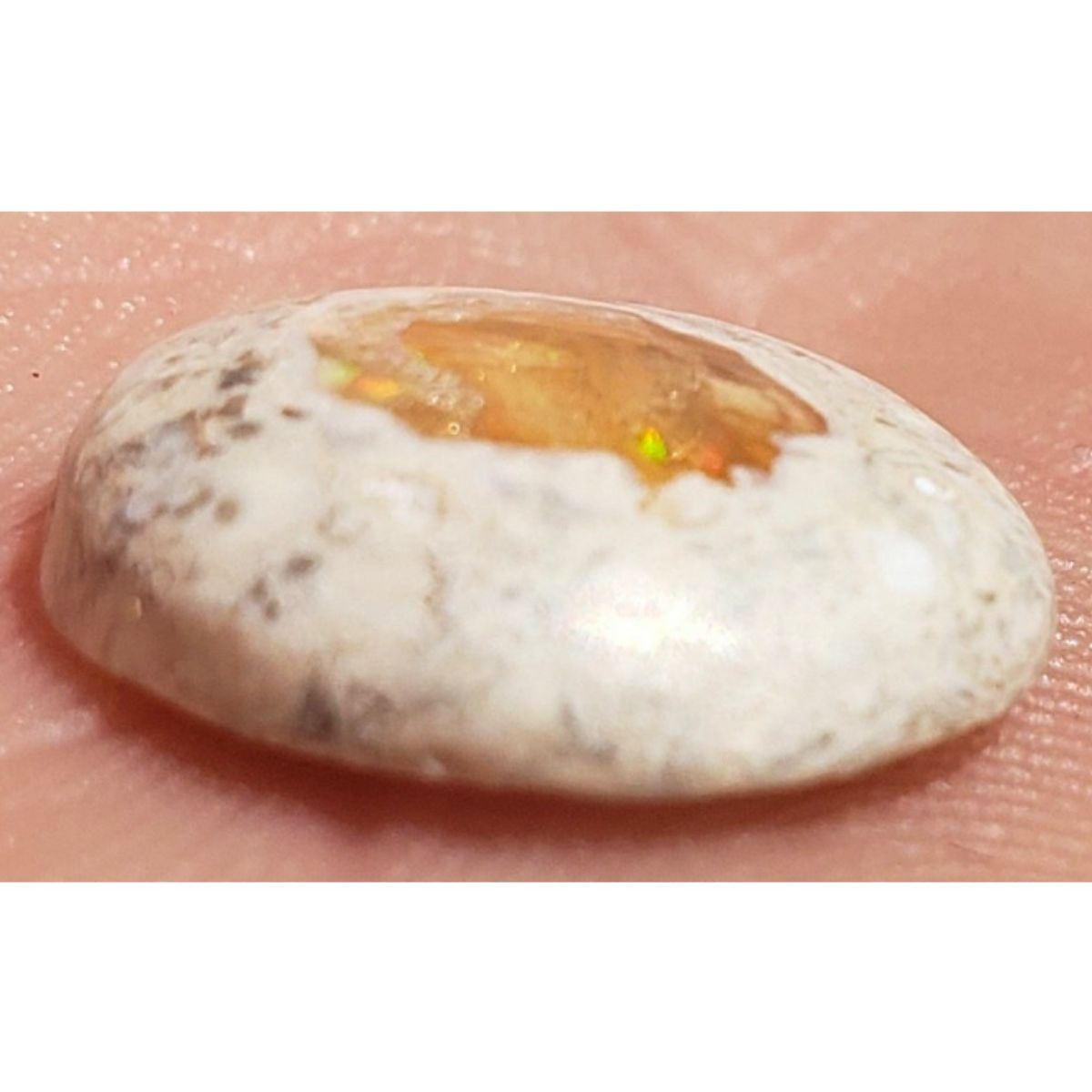 4.1ct Mexican Opal Cantera cabochon gemstone. Opal on rhyolite matrix. 14x12.5mm. 4mm thick. Magdalena Mexico origin. Ready to be mounted into a beautiful & unique ring or pendant.Â