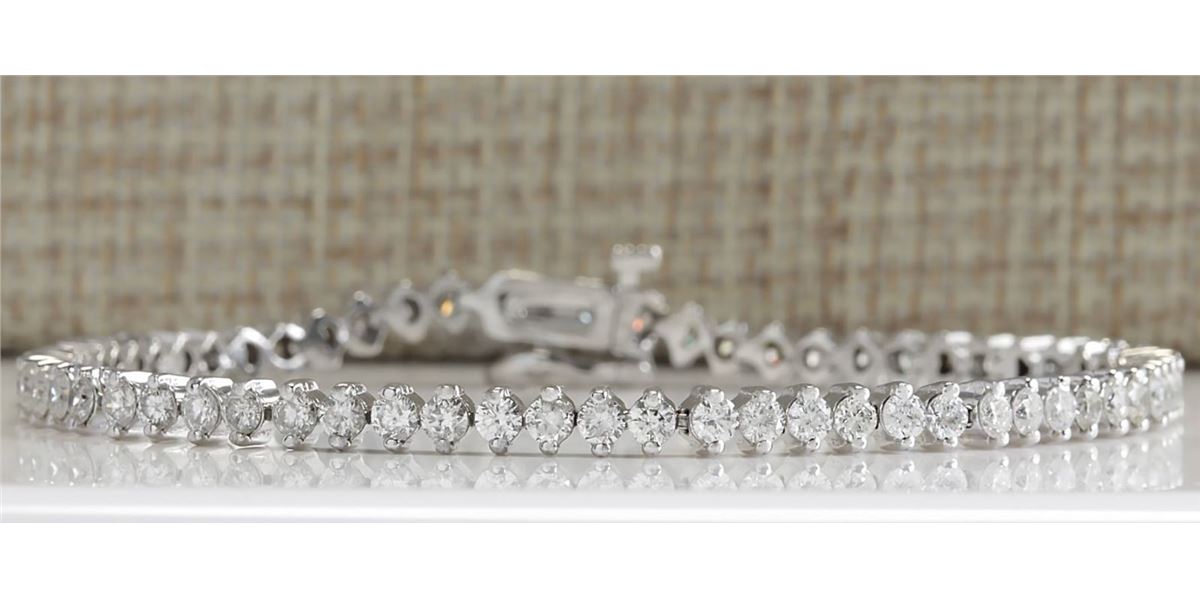 Stamped: 14K Bracelet Width: 3.75mm Bracelet Length: 7.5 Inches Total Bracelet Weight: 10.3 Grams Diamond Weight: Total natural diamond weight is 4.20carat. SI1-SI2 clarity / G-H color SKU: [703859]