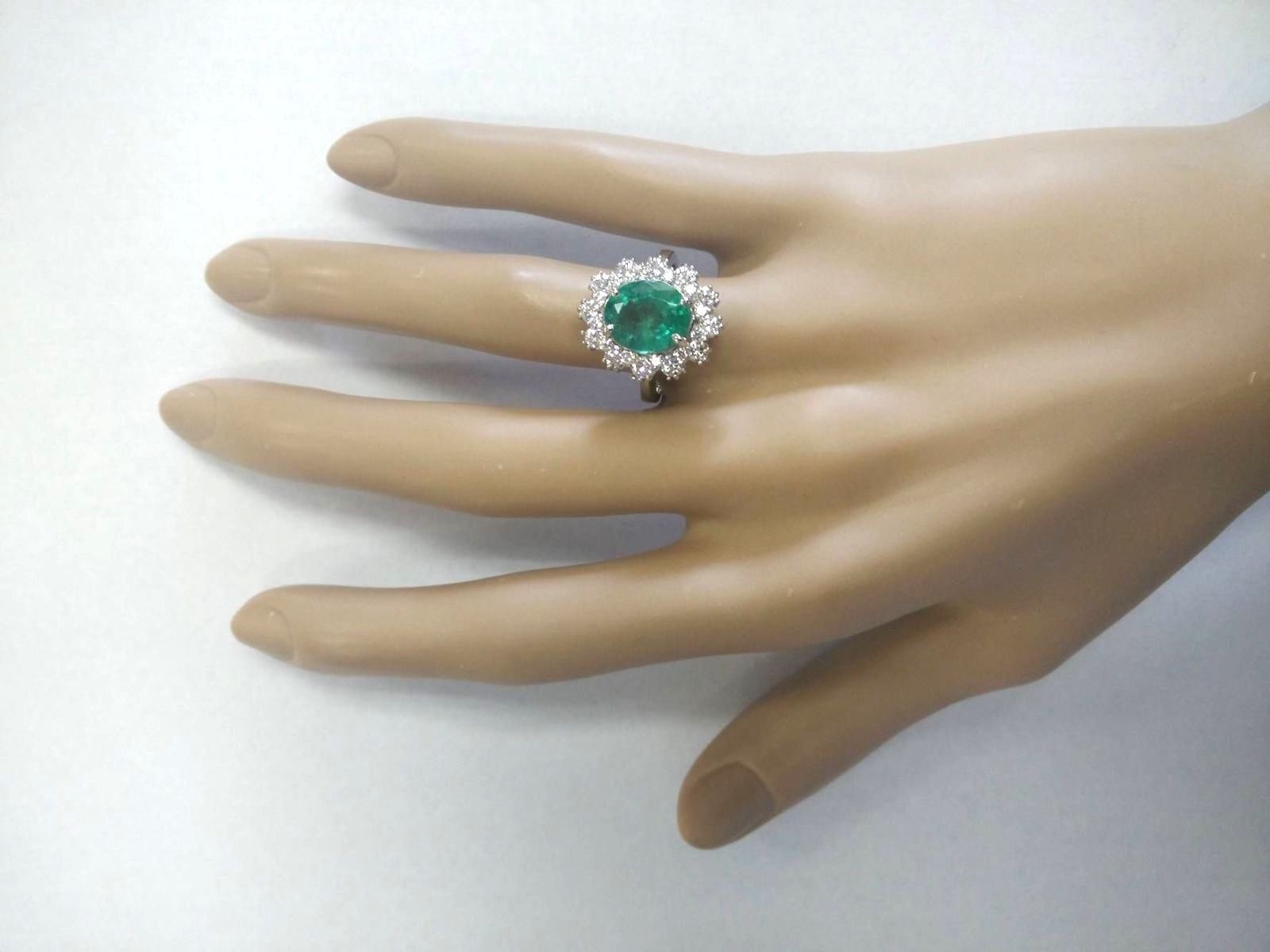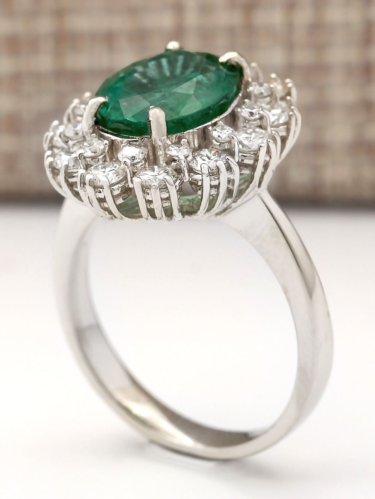 4.20 CTW Natural Emerald And Diamond Ring In 18K White Gold