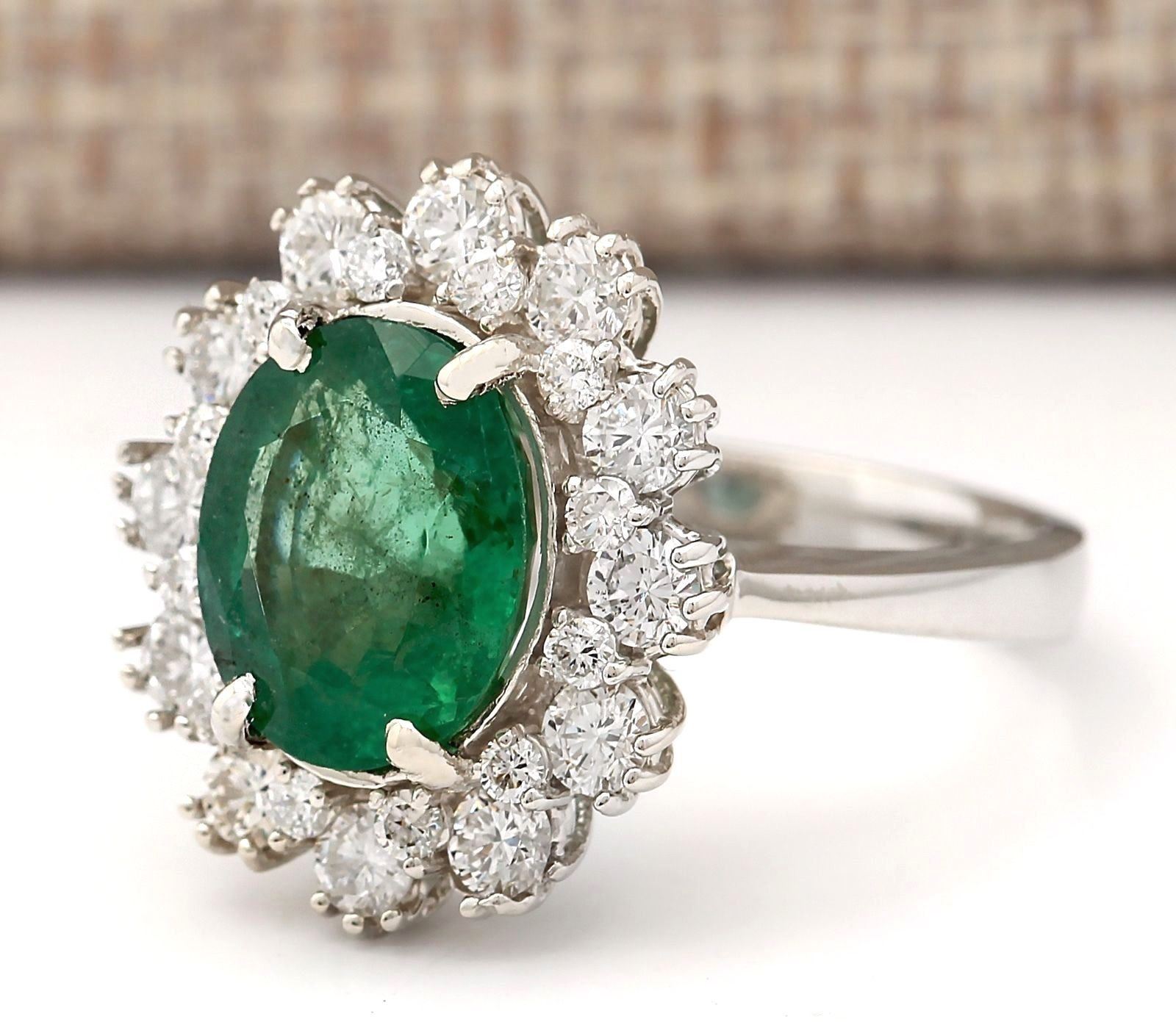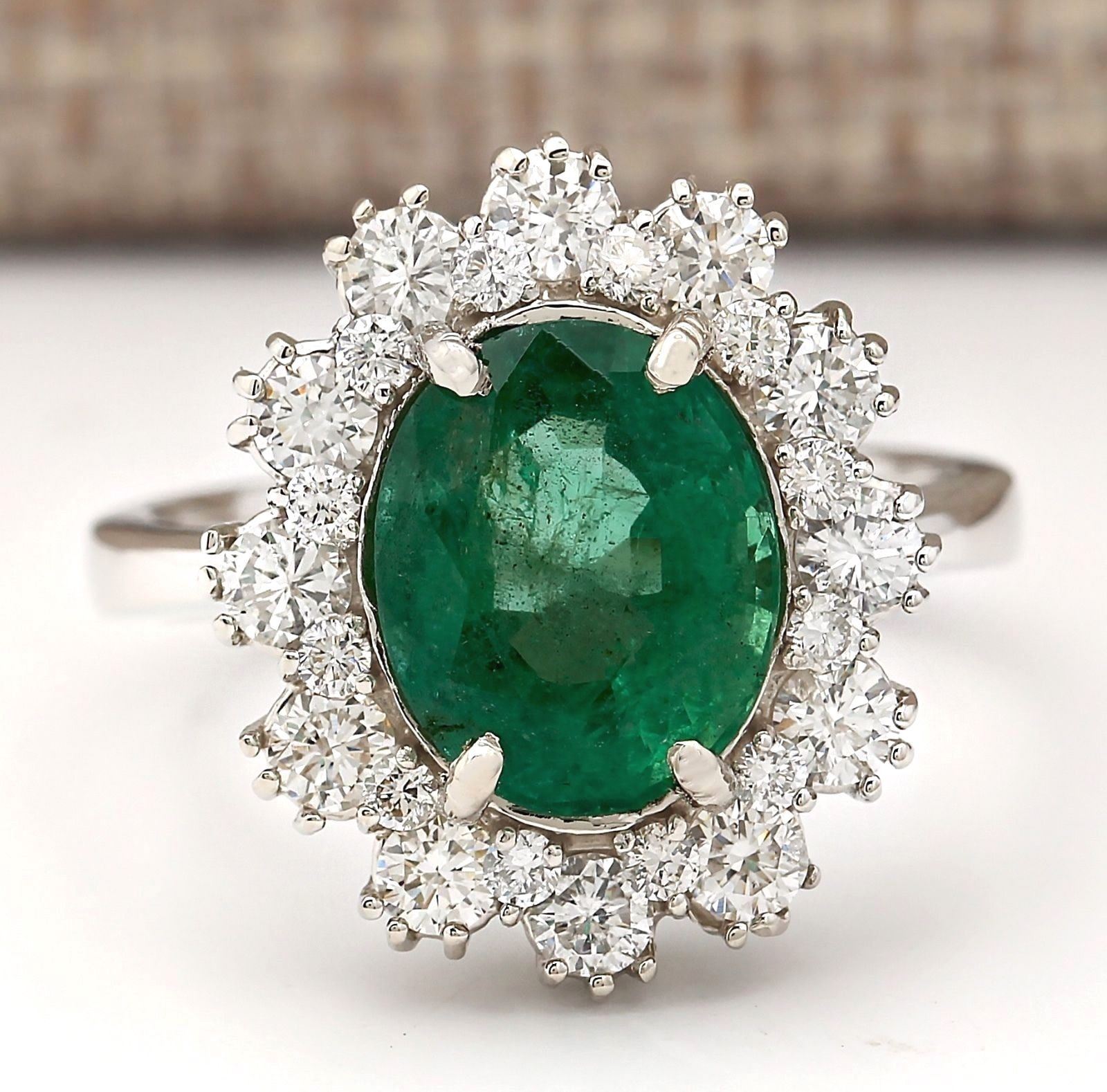4.20 CTW Natural Emerald And Diamond Ring In 18K White Gold
