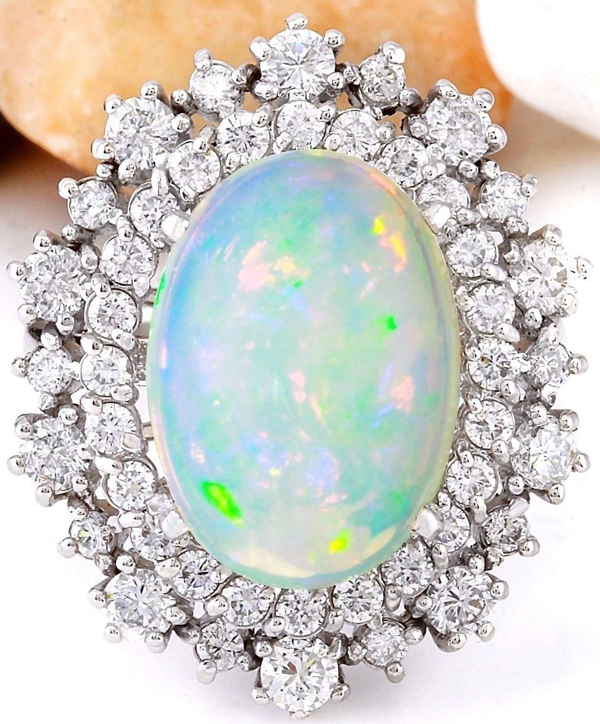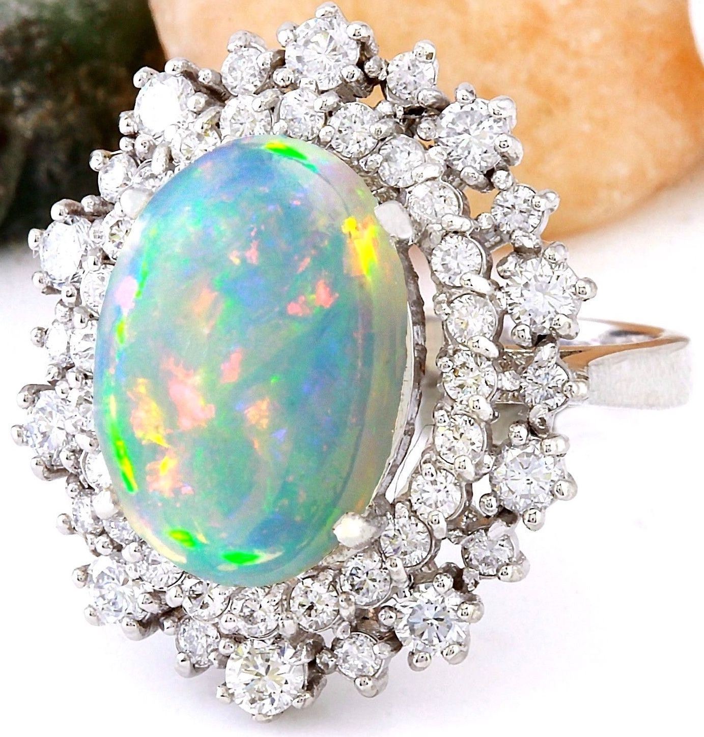 4.20 Carat Natural Opal 18K Solid White Gold Diamond Ring