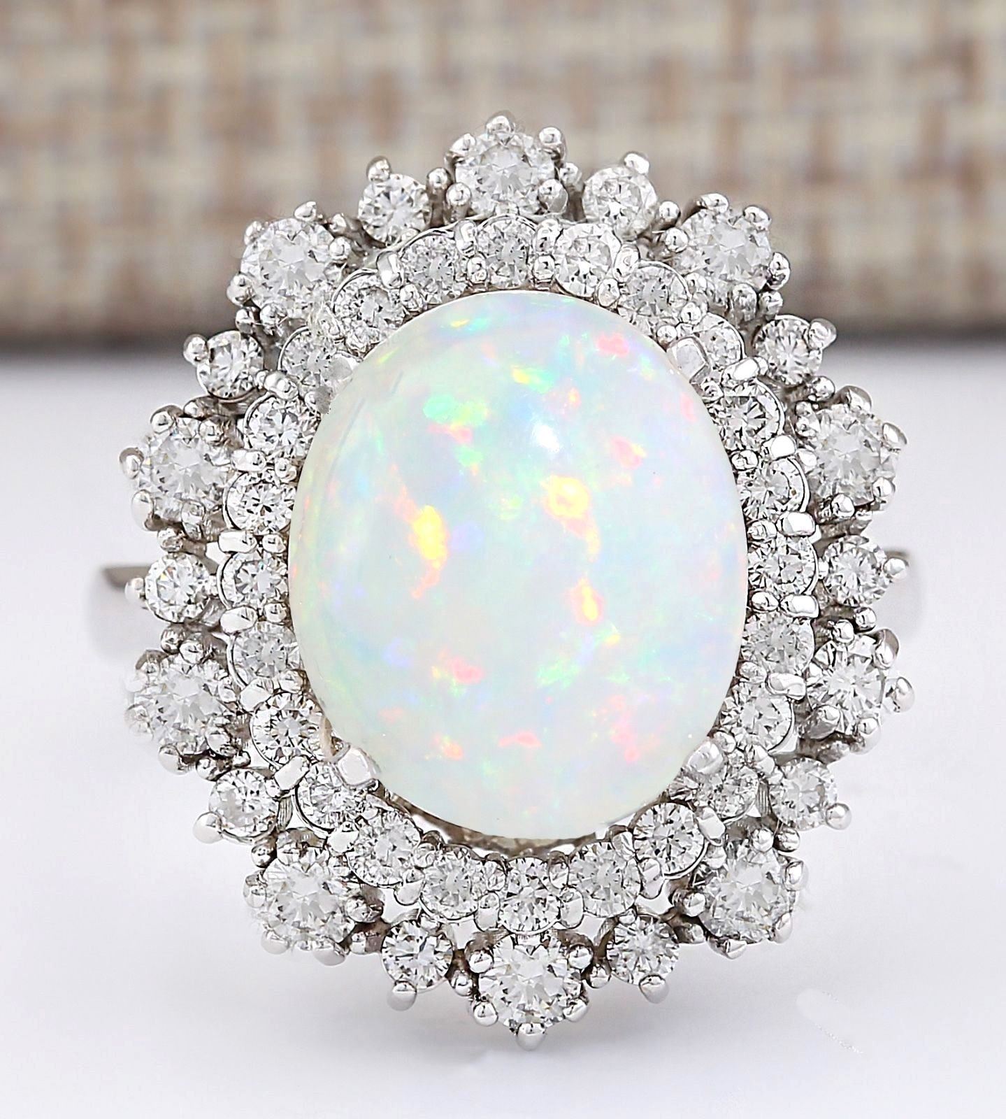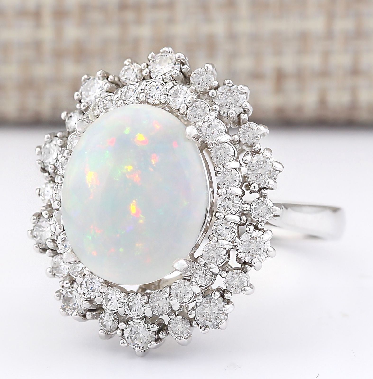 4.20 CTW Natural Opal And Diamond Ring In18K White Gold
