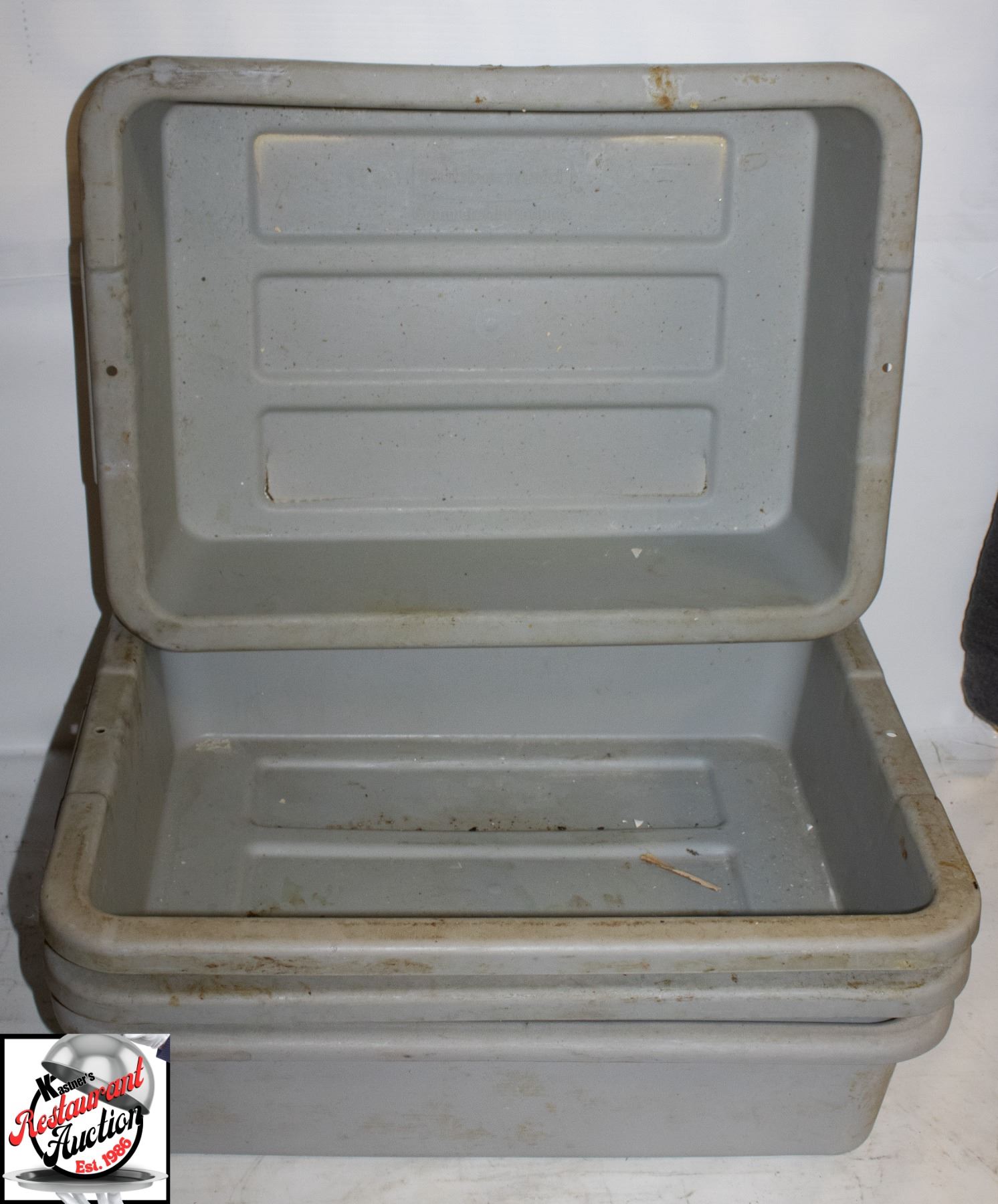 4 20" X 15" X 15" RUBBERMAID BUS BINS