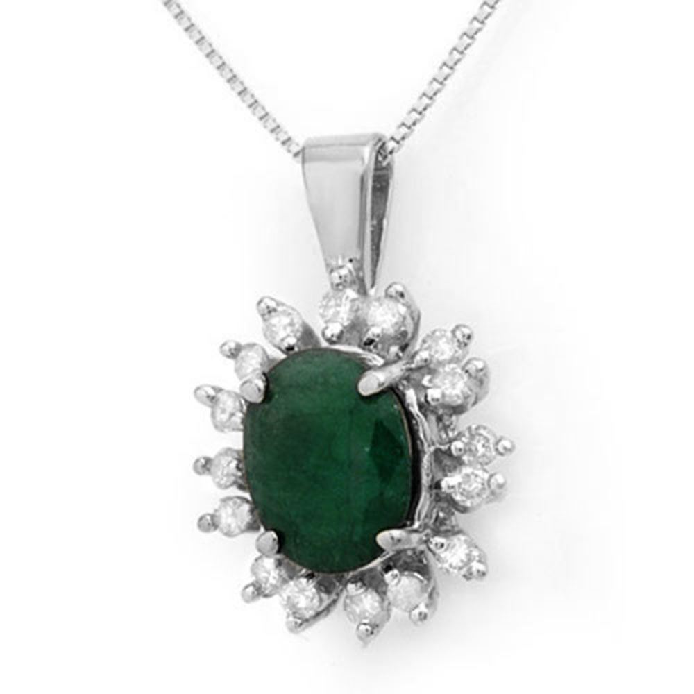REF-87H3R - SKU: 13606 ---- 4.20 ctw Emerald & Diamond Pendant 14k White Gold