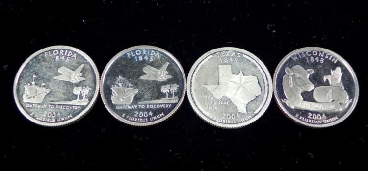 Here are four 2004-S Proof State Quarters. Two are from Florida, Wisconsin, and Texas *