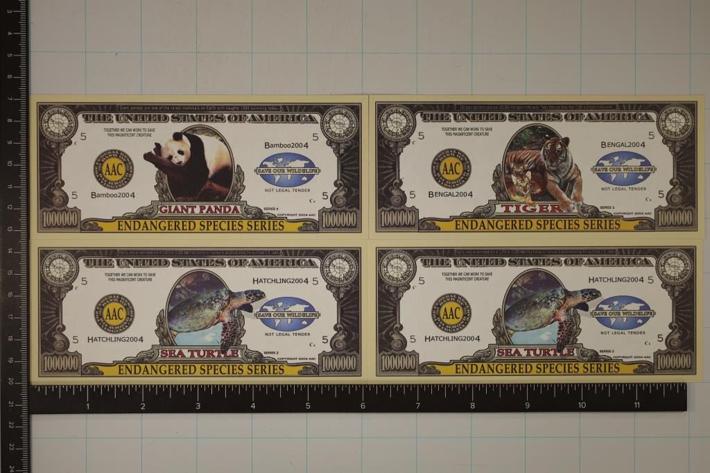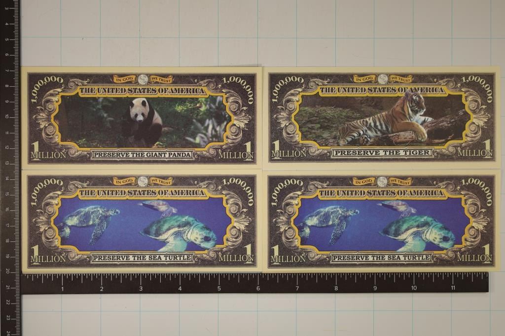 1,000,000 FANTASY BILLS, BENGAL TIGER, GIANT PANDA AND 2-SEA TURTLES