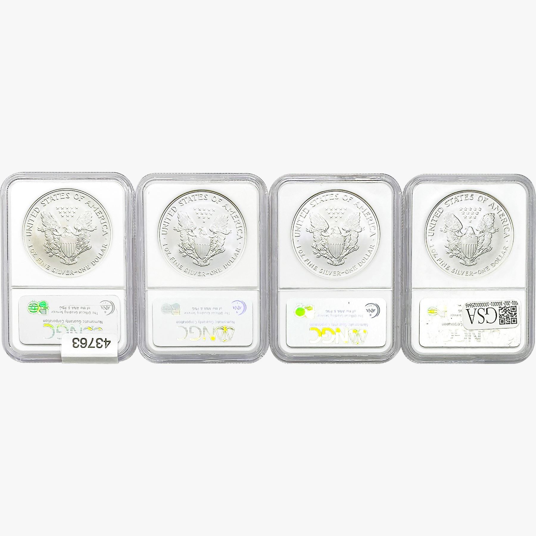 e. Coins sold referencing a third-party grading service are sold “AS IS” without any express or implied warranty, except for a guarantee by GSA that they are genuine. Removal or alteration of the holder, voids all of Bidder’s claims concerning that Product. Certain warranties may be available from the grading services and Bidders are referred to them for further details: Numismatic Guaranty Corporation (NGC), PO Box 4776, Sarasota, FL 34230, www.ngccoin.com/services/writtenguarantee.asp; Professional Coin Grading Services (PCGS), PO Box 9458, Newport Beach, CA 92658, www.pcgs.com/guarantee.html; ANACS, 6555 S. Kenton St., Ste. 303, Englewood, CO 80111; and Independent Coin Grading Co. (ICG), 7901 East Bellview, Ave., Suite 50, Englewood, CO 80111.