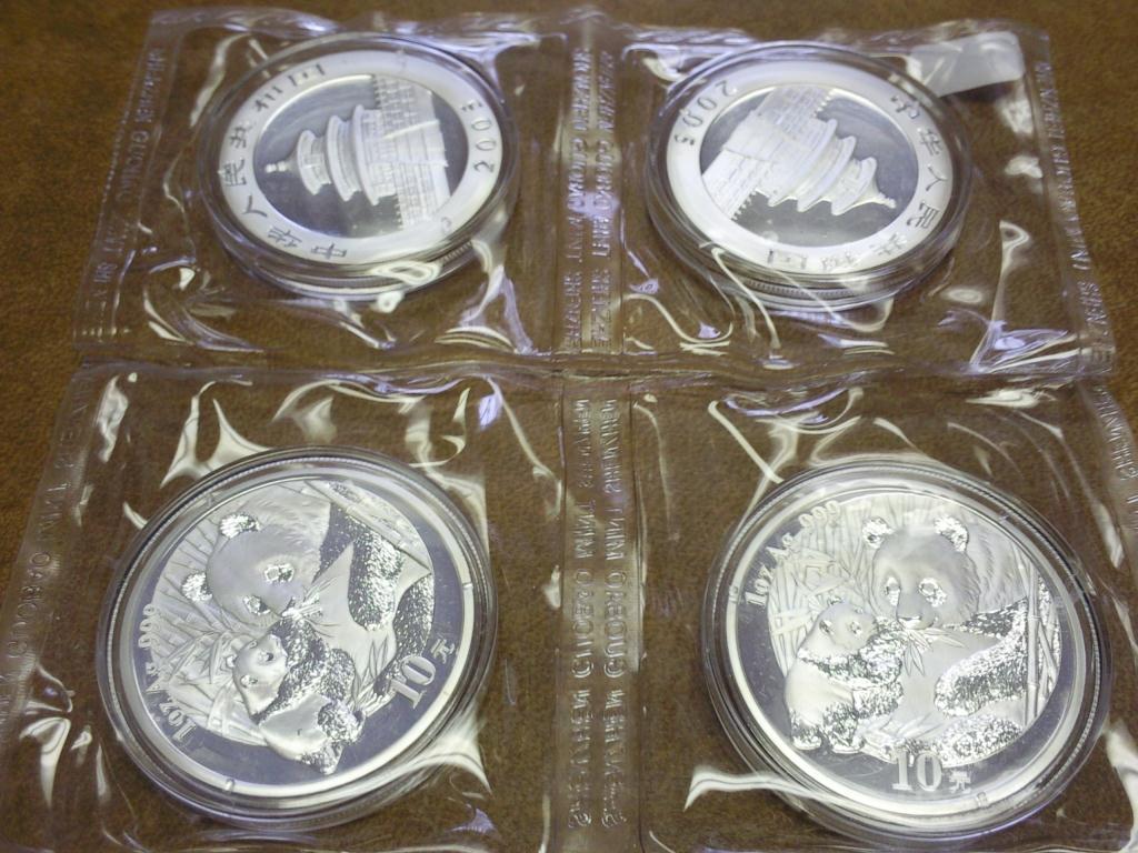 4-2005 CHINA 10 YUAN SILVER PANDA COINS (UNC)