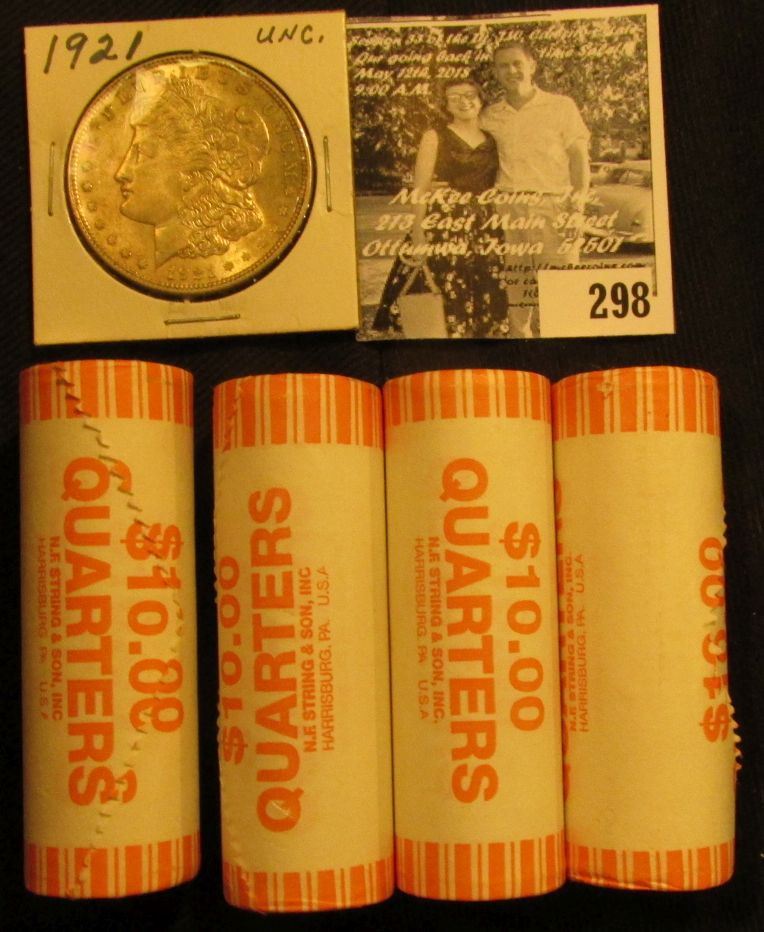(4) 2005 D Solid Date Rolls of Gem BU Oregon Statehood Commemorative Quarters in bank-wrapped Rolls; & 1921 P U.S.Morgan Silver Dollar, BU. (total face value $41.00).