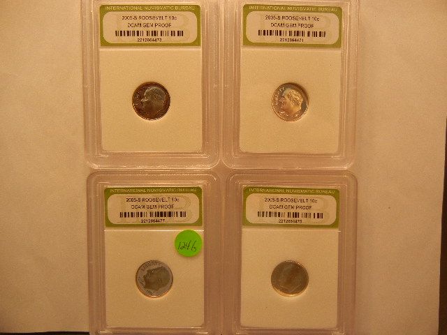 (4) 2005-S Roosevelt Dimes, Graded by INB DCAM Gem Proof