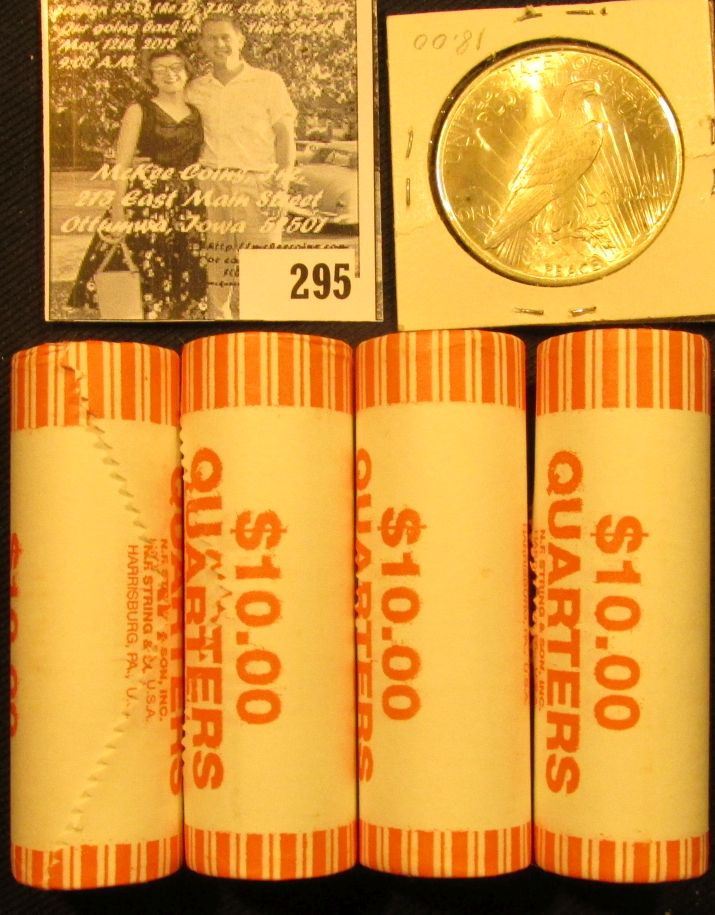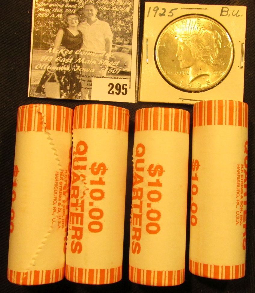 (4) 2006 D Solid Date Rolls of Gem BU Nebraska Statehood Commemorative Quarters in bank-wrapped Rolls; & 1925 P U.S. Peace Silver Dollar, BU. (total face value $41.00).