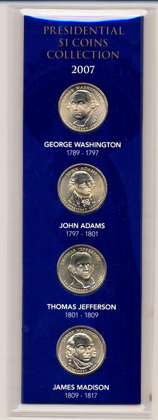 4 2007 PRESIDENTIAL DOLLAR COINS ALL UNCIRCULATED IN SEALED DISPLAY