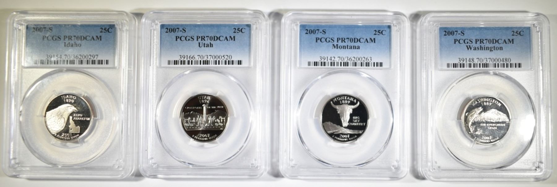 4- 2007-S STATE QUARTERS, ALL PCGS PR-70 DCAM