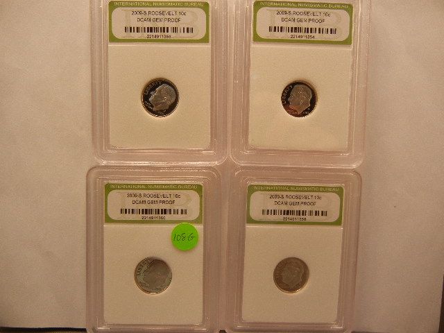(4) 2009-S Roosevelt Dimes, Graded by INB DCAM Gem Proof