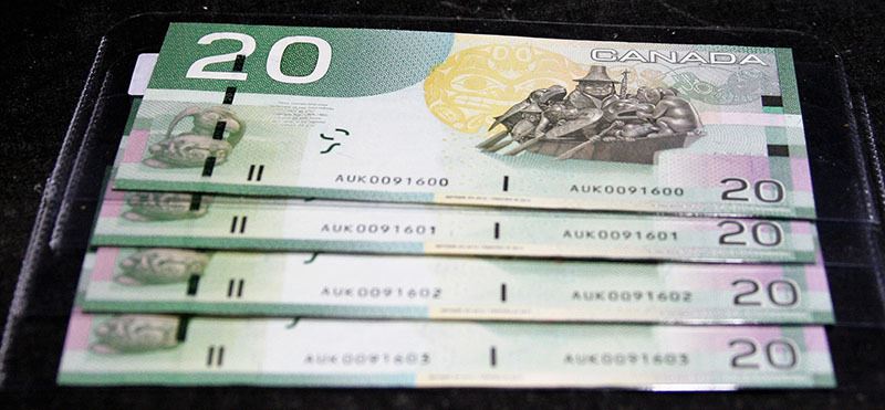 Set of 4 Canadian $20 bank notes with consecutive serial numbers - AUK0091600-AUK0091603 - UNC