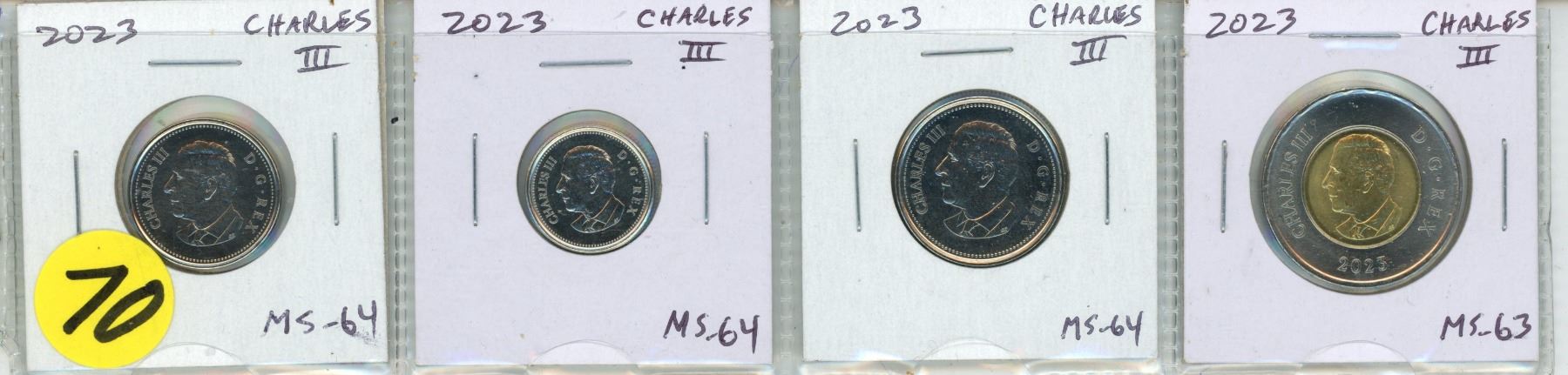 (4) 2023 King Charles III 5, 10, 25 Cent Coins and 2 Dollar Coins All Uncirculated