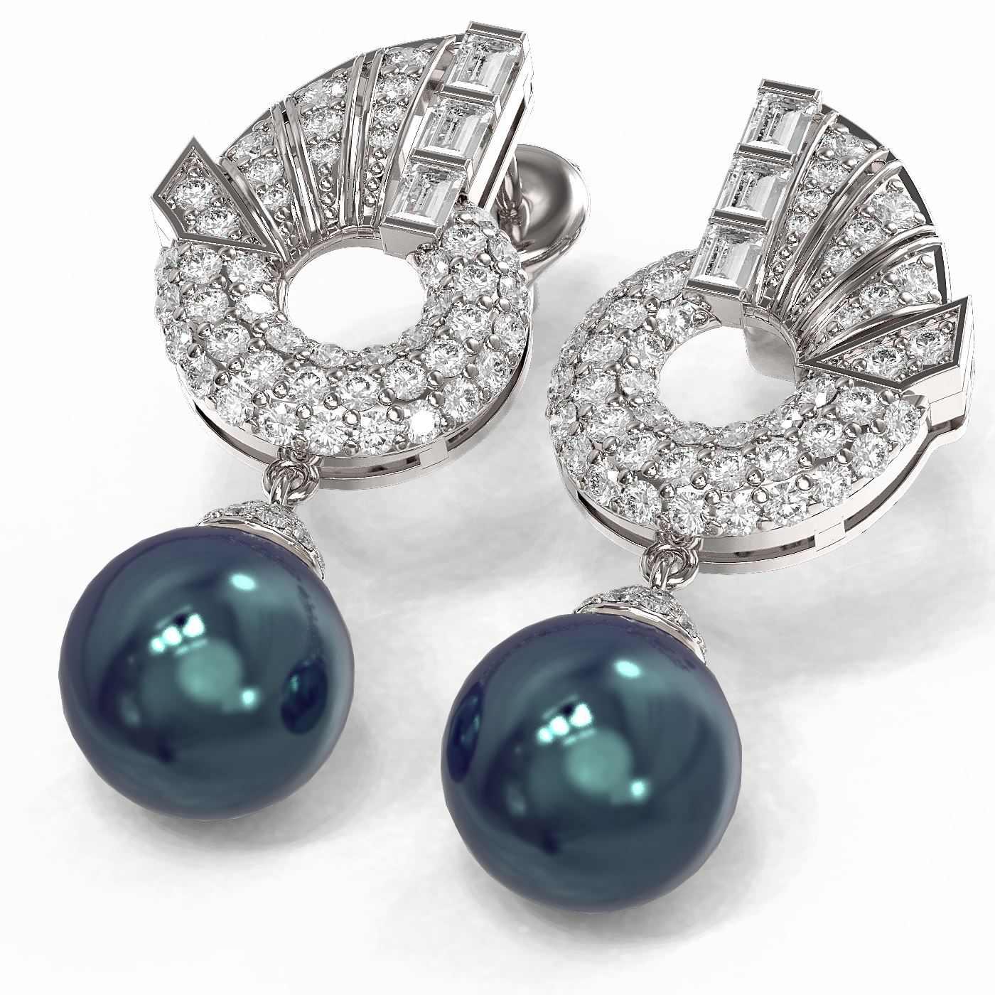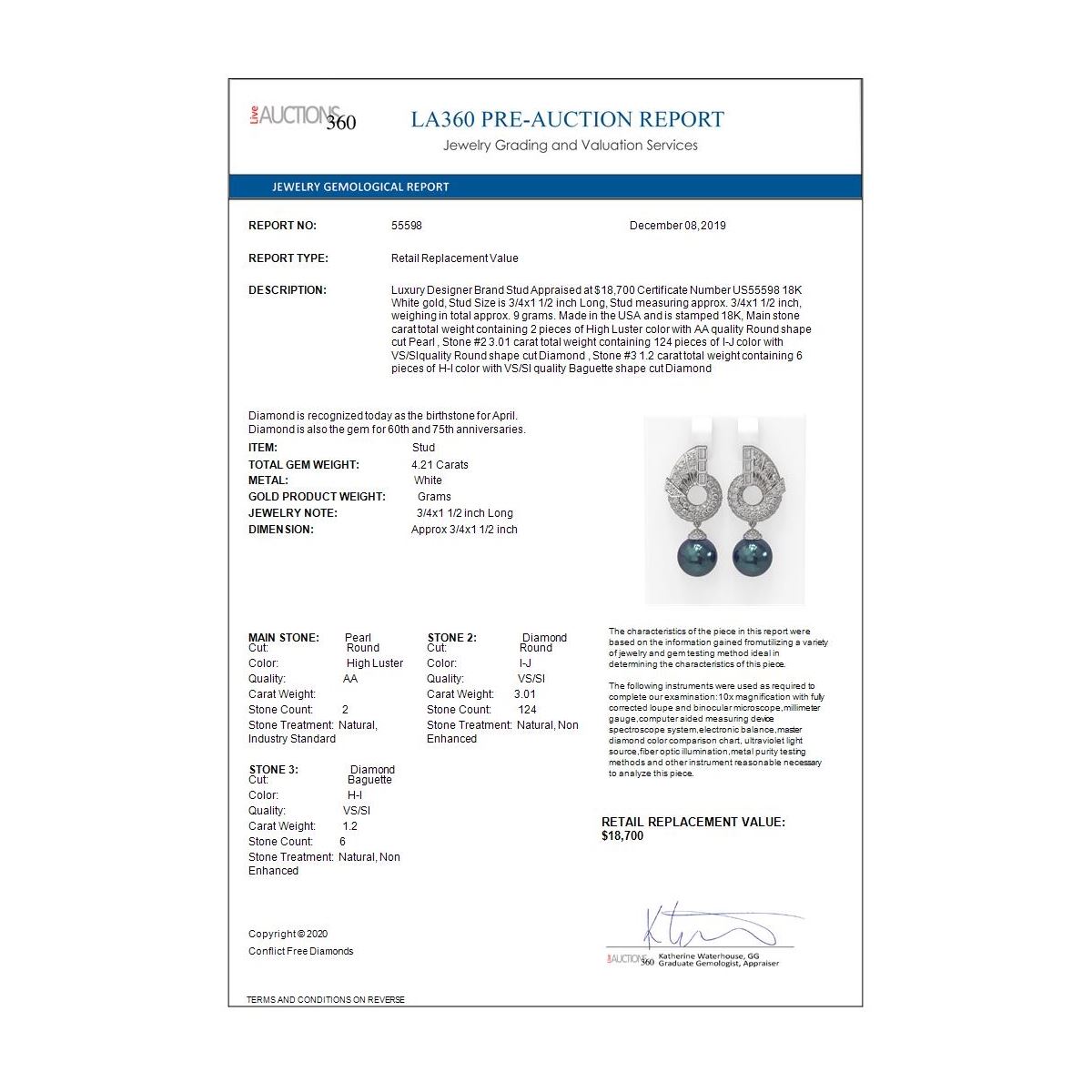 REF-378W2H - SKU: 55598 ---- 4.21 ctw Diamond & Pearl Earrings 18K White Gold