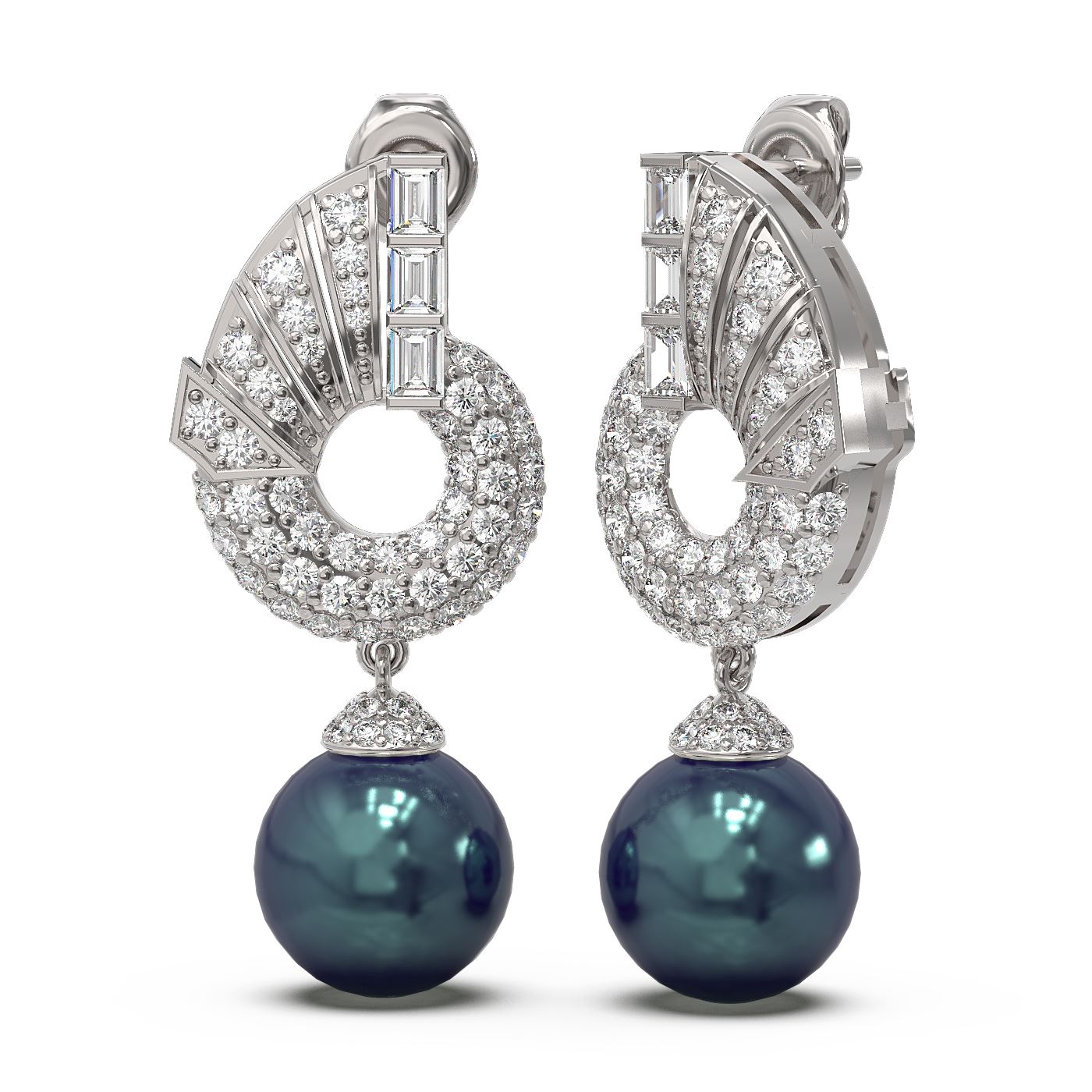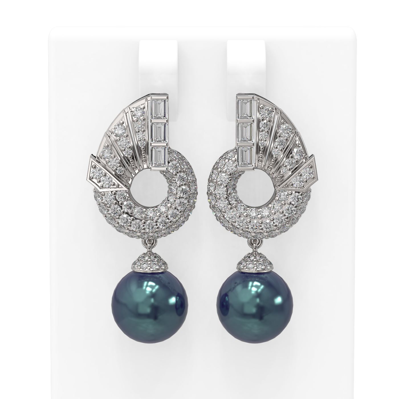 REF-378W2H - SKU: 55598 ---- 4.21 ctw Diamond & Pearl Earrings 18K White Gold