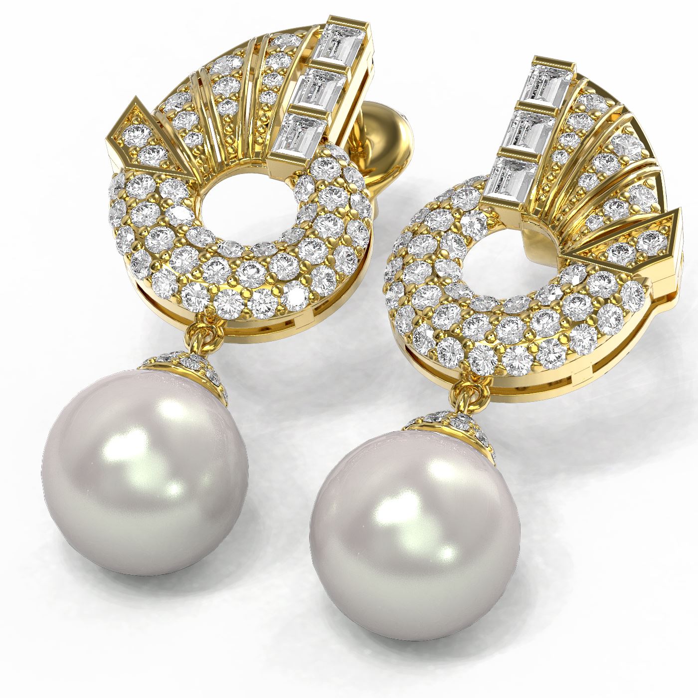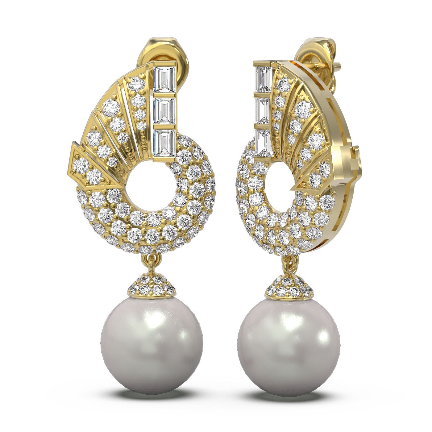 SKU: 55603 ---- 4.21 ctw Diamond & Pearl Earrings 18K Yellow Gold
