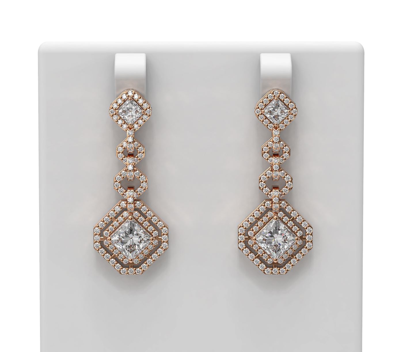 4.21 ctw Princess Diamond Earrings 18K Rose Gold