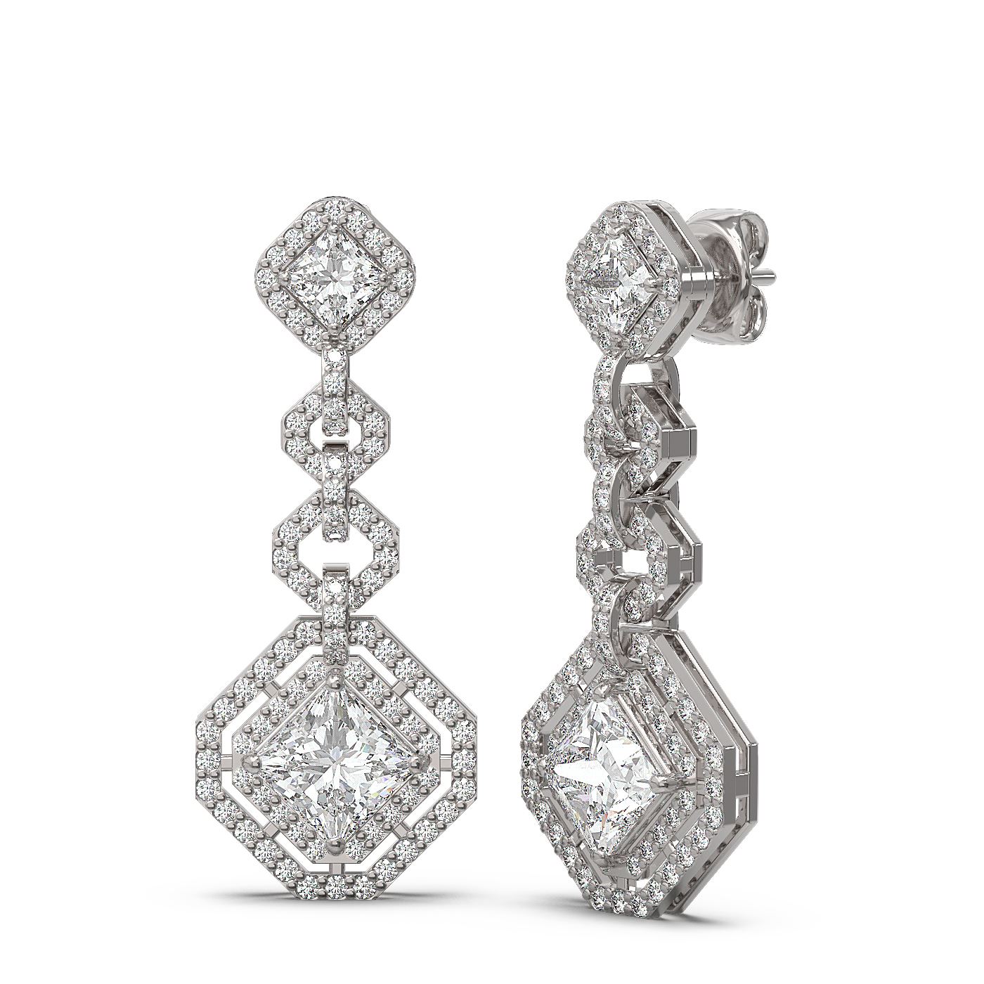 4.21 ctw Princess Diamond Earrings 18K White Gold