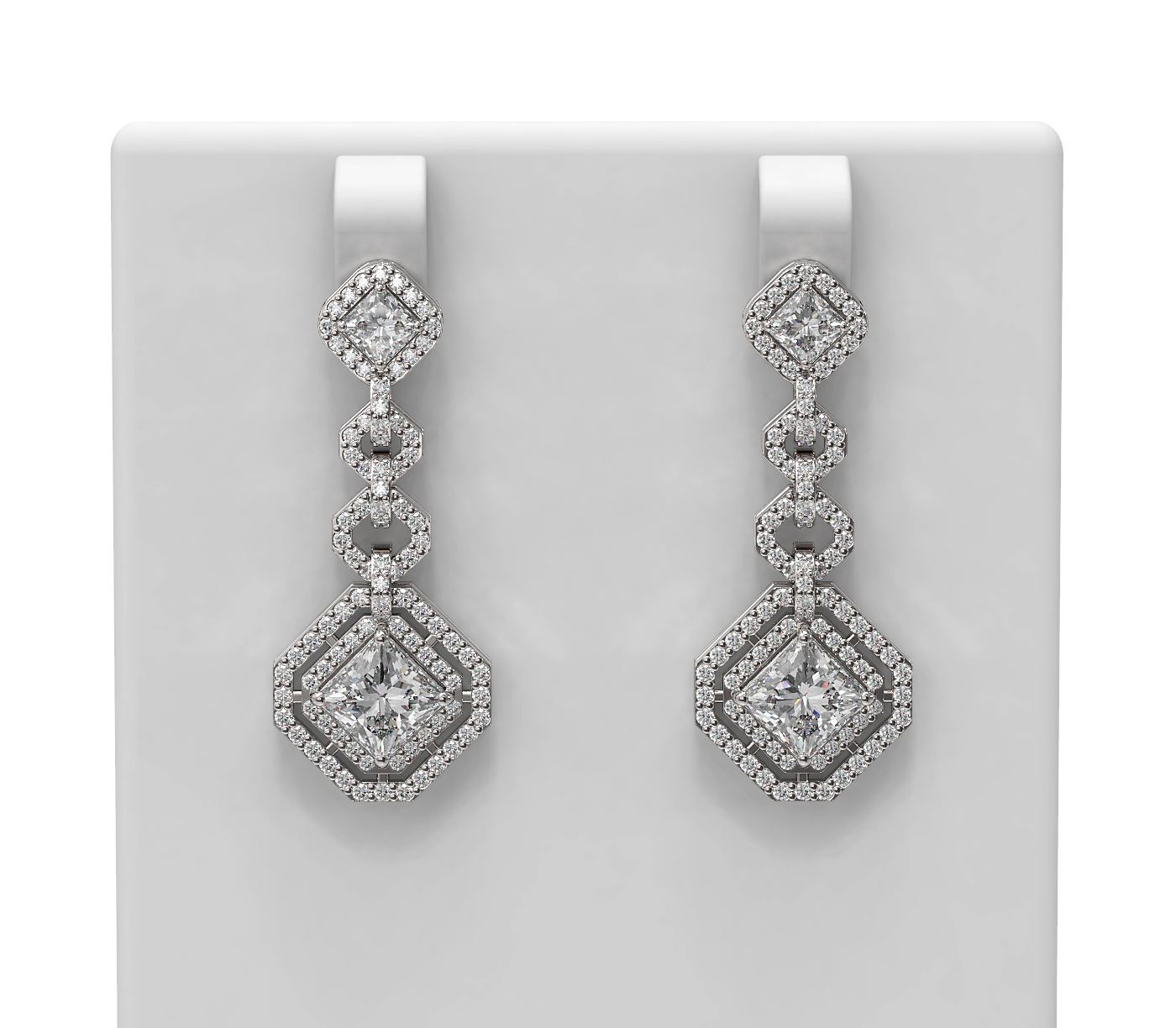 4.21 ctw Princess Diamond Earrings 18K White Gold
