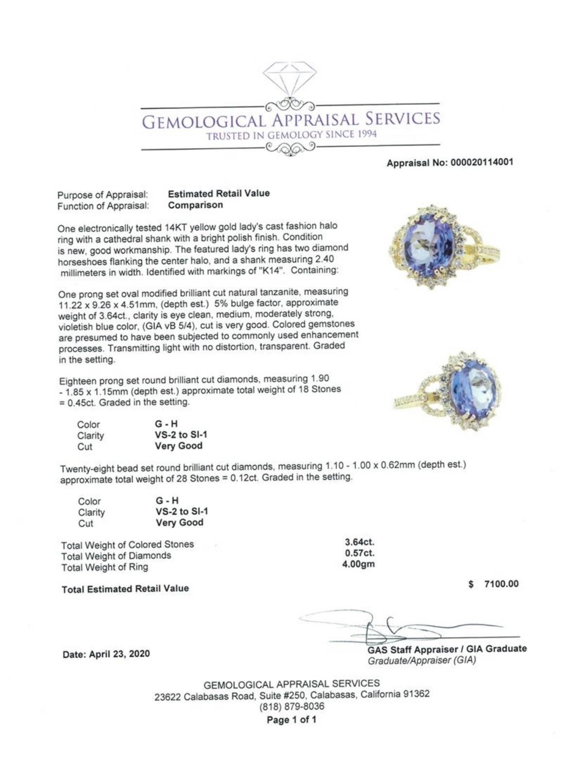 One electronically tested 14KT yellow gold lady's cast fashion halo ring with a cathedral shank with a bright polish finish. The featured lady's ring has two diamond horseshoes flanking the center halo, and a shank measuring 2.40 millimeters in width. Ide GAS Appraised.