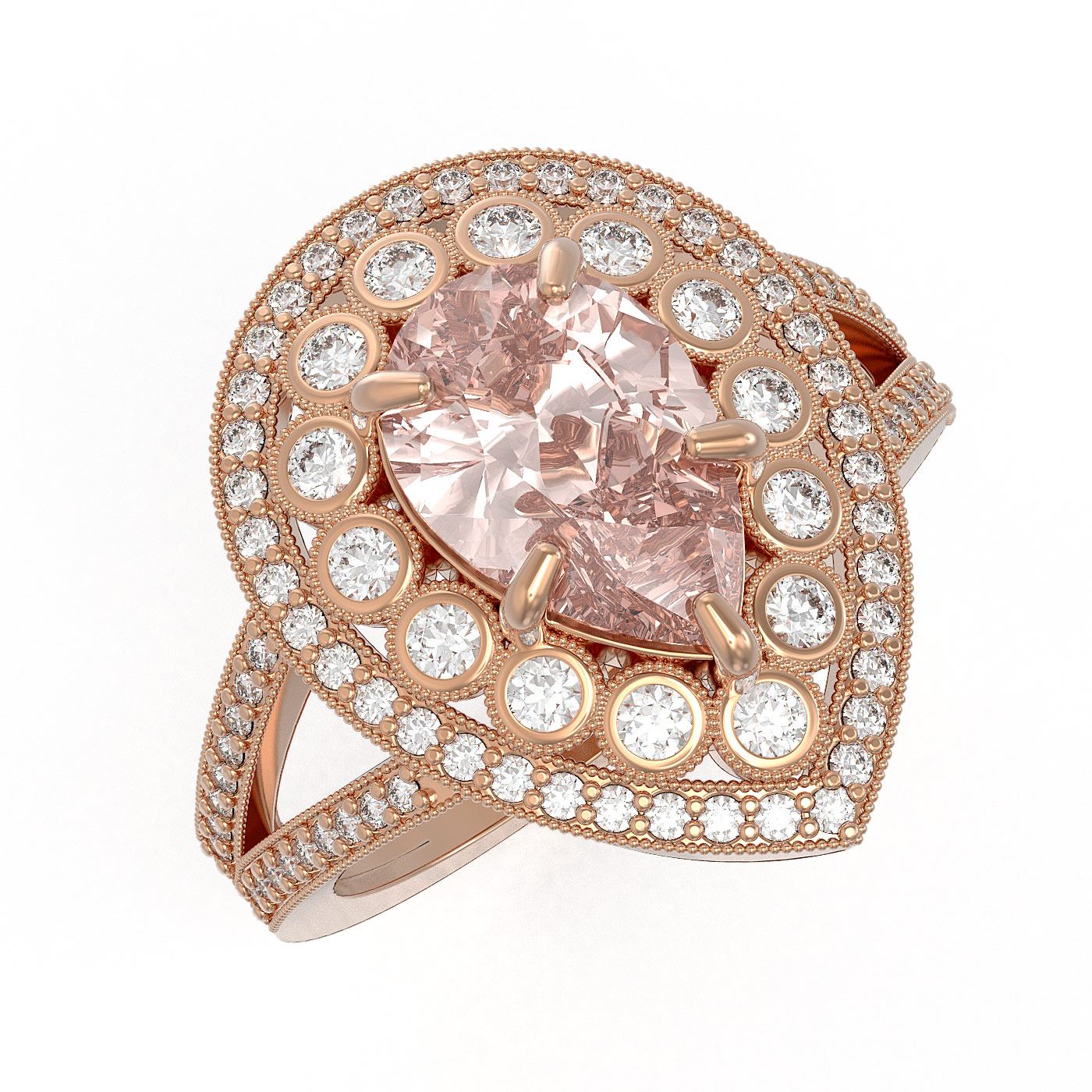 REF-195H6R - SKU: 43143 ---- 4.22 ctw Certified Morganite & Diamond Victorian Ring 14K Rose Gold