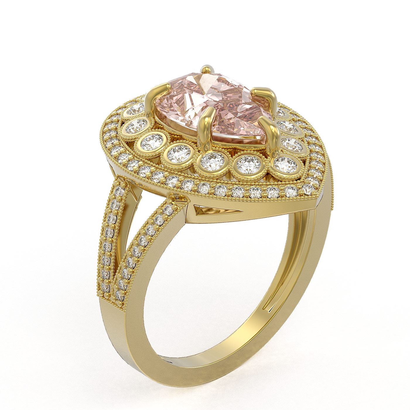SKU: 43144 ---- 4.22 ctw Certified Morganite & Diamond Victorian Ring 14K Yellow Gold